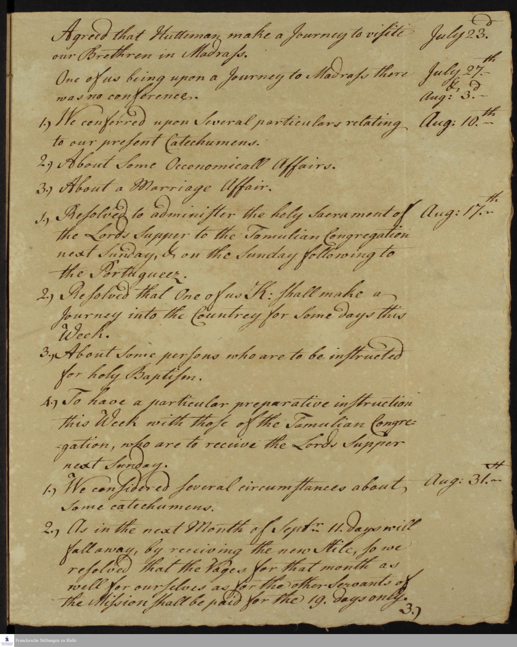 23. Juli - 31. August 1752