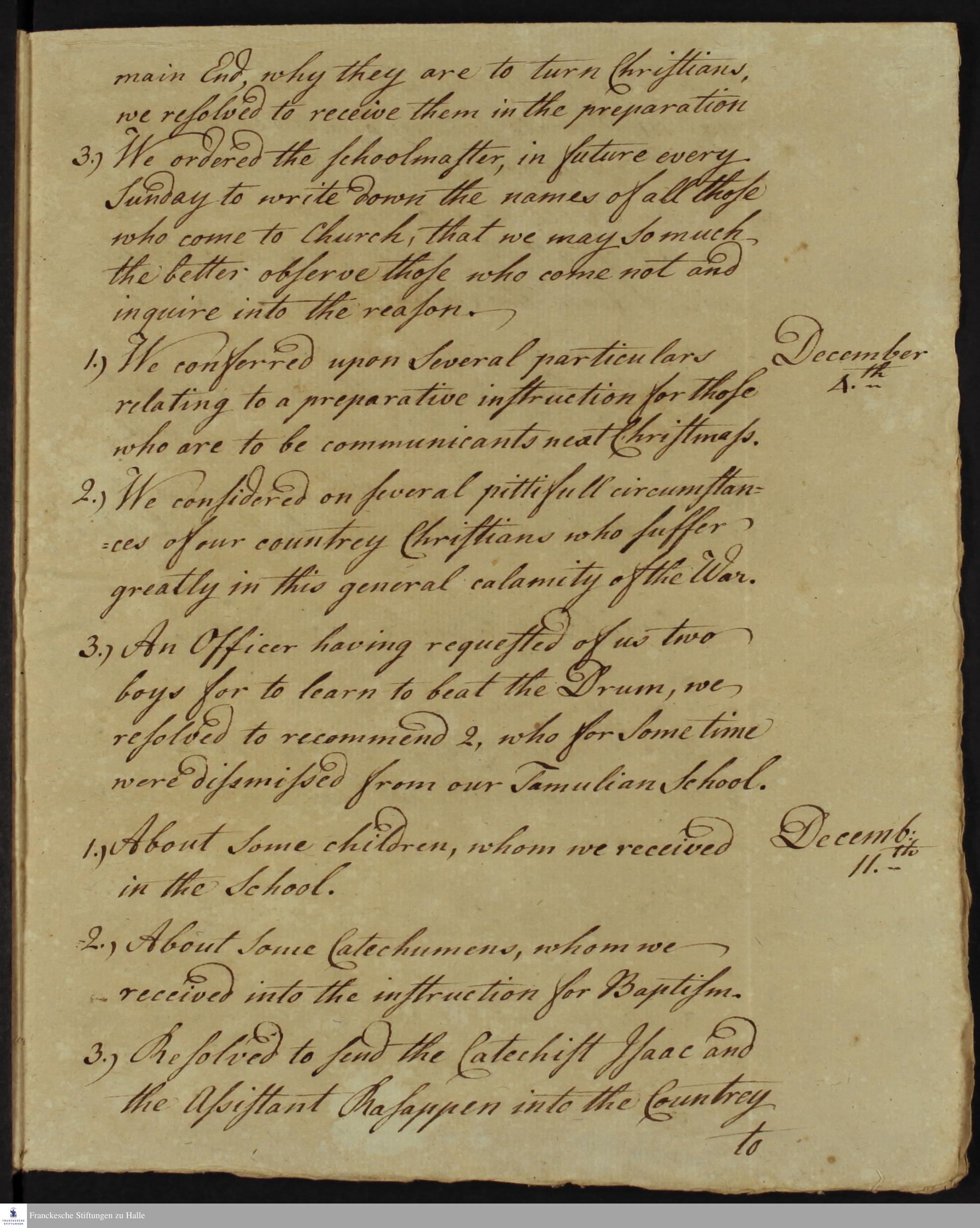 Tagebuch von Johann Zacharias Kiernander an Georg Heinrich Conrad Hüttemann.