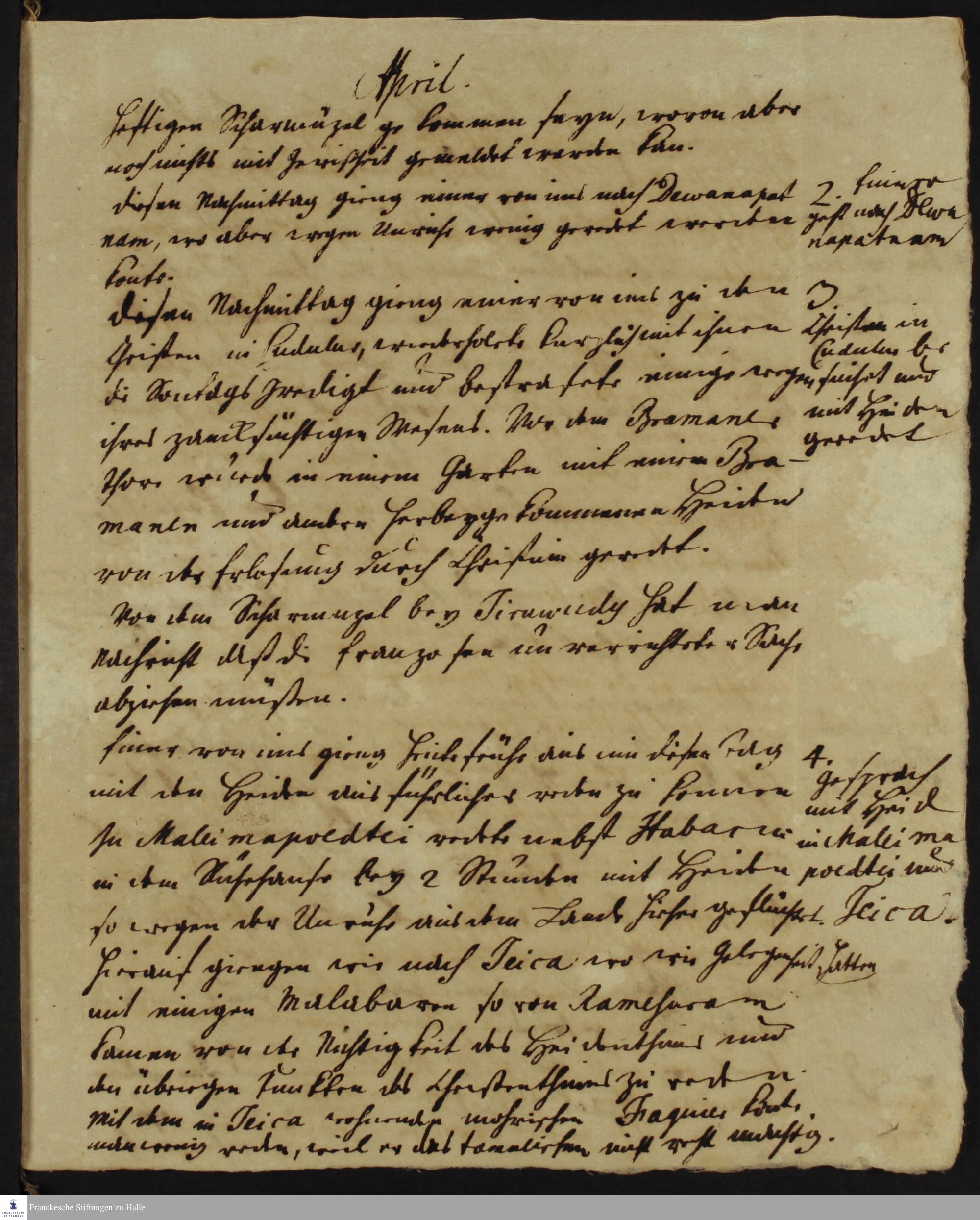 Tagebuch von Johann Zacharias Kiernander und Georg Heinrich Conrad Hüttemann.