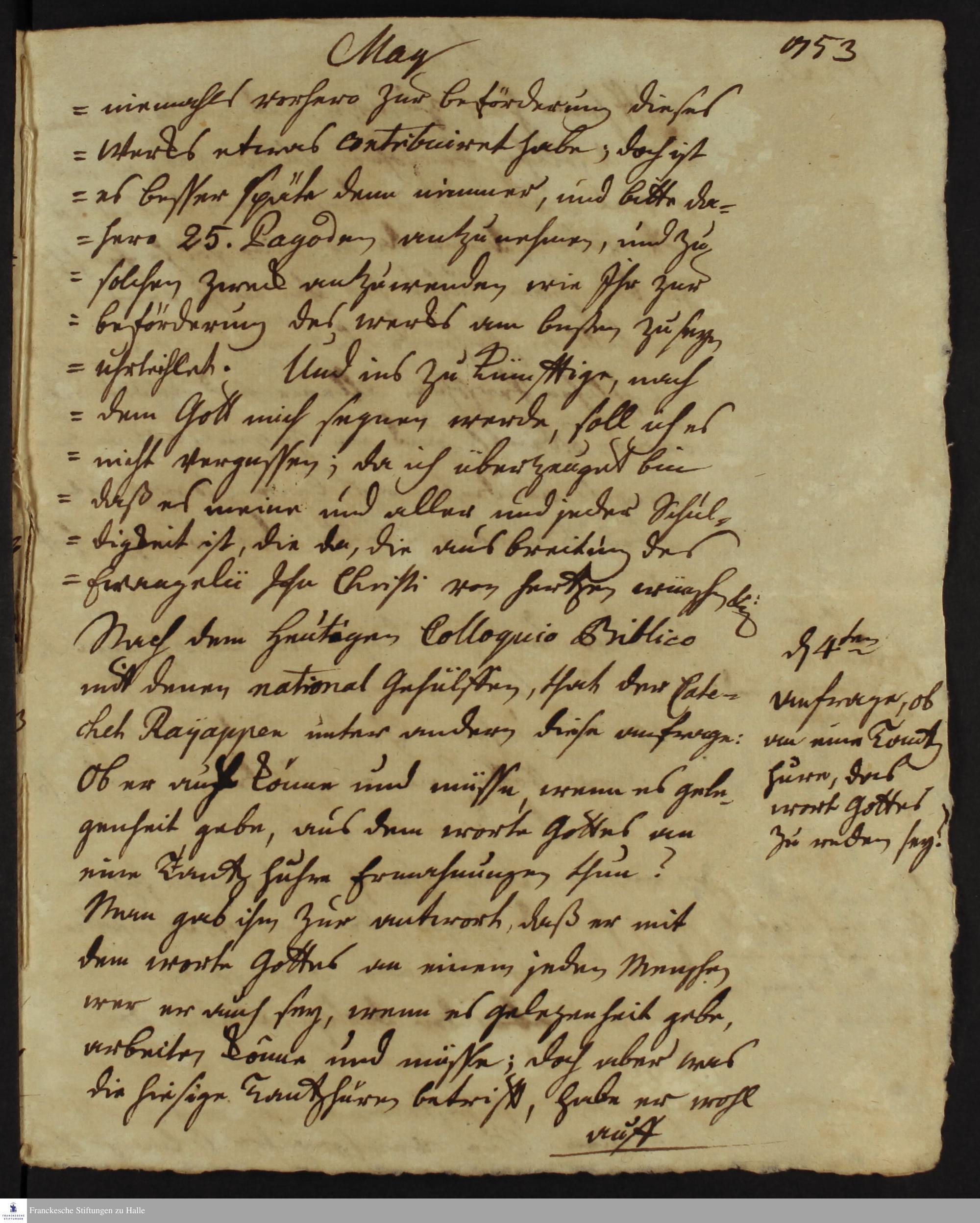 Tagebuch von Johann Zacharias Kiernander und Georg Heinrich Conrad Hüttemann.