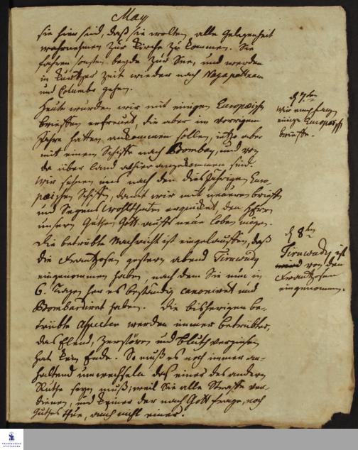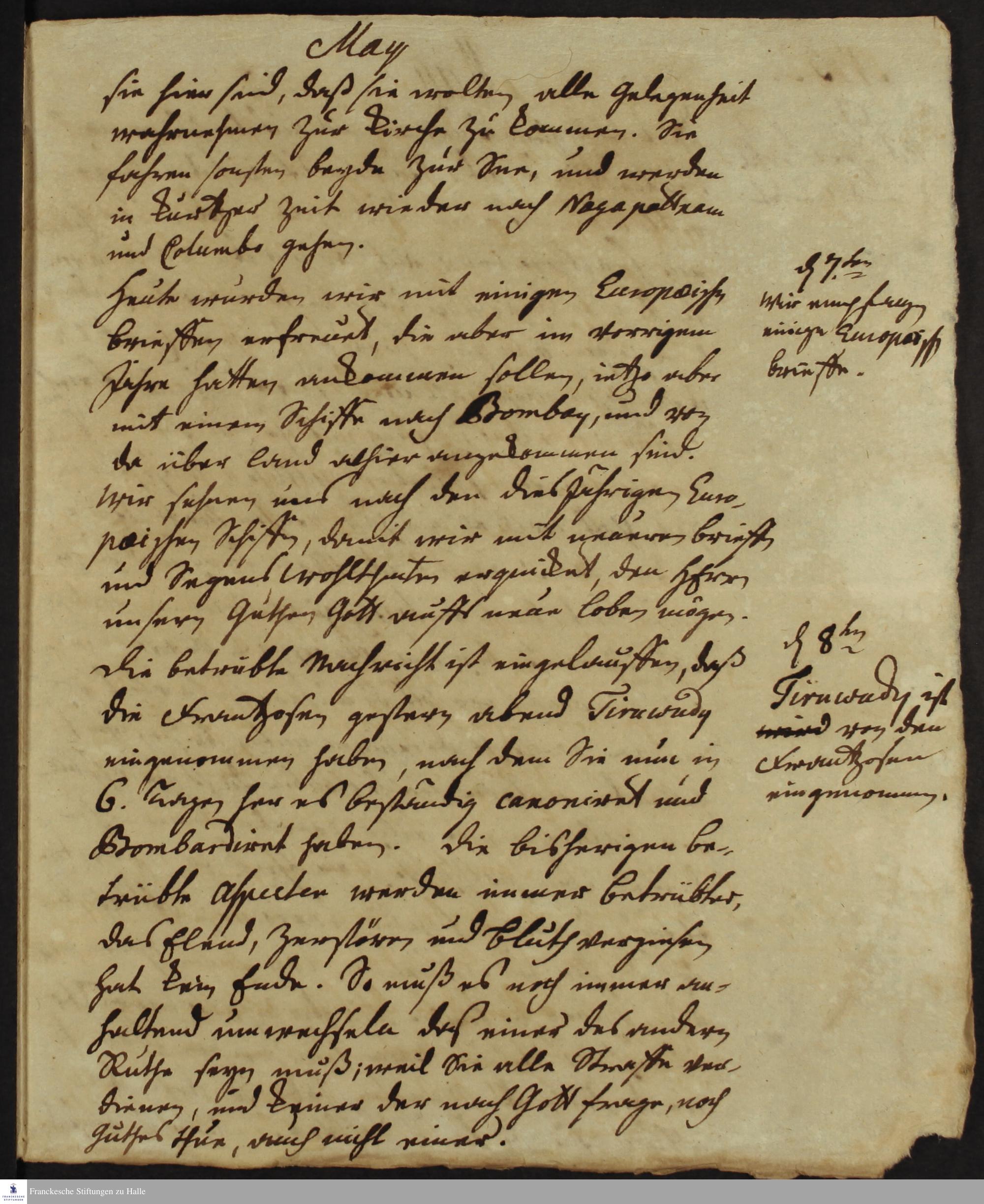Tagebuch von Johann Zacharias Kiernander und Georg Heinrich Conrad Hüttemann.