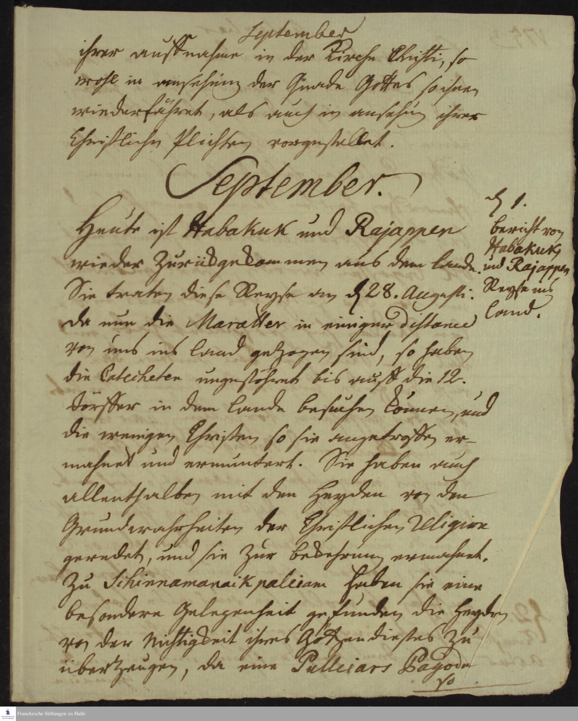Tagebuch von Johann Zacharias Kiernander und Georg Heinrich Conrad Hüttemann.