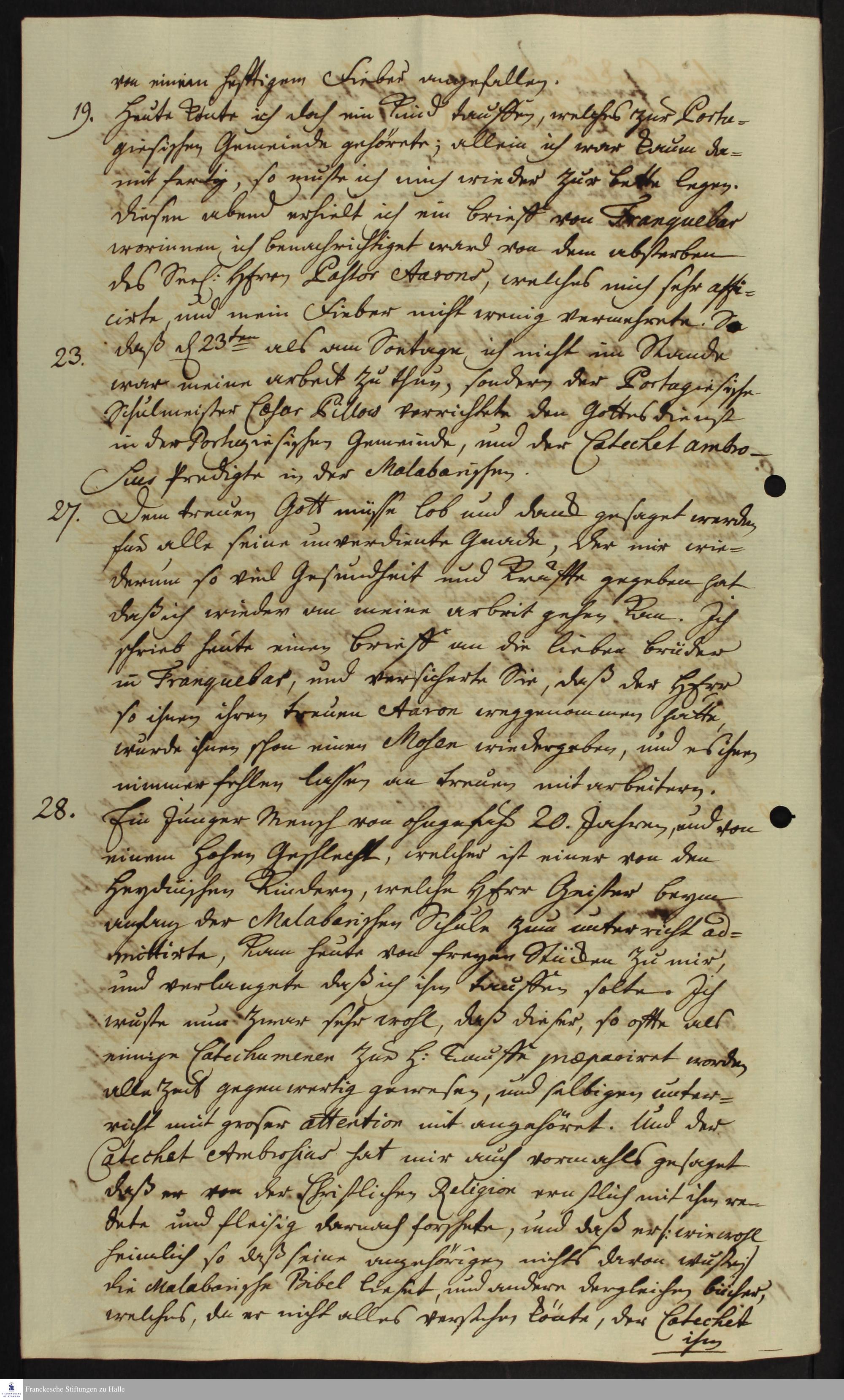 Tagebuch von Johann Zacharias Kiernander.