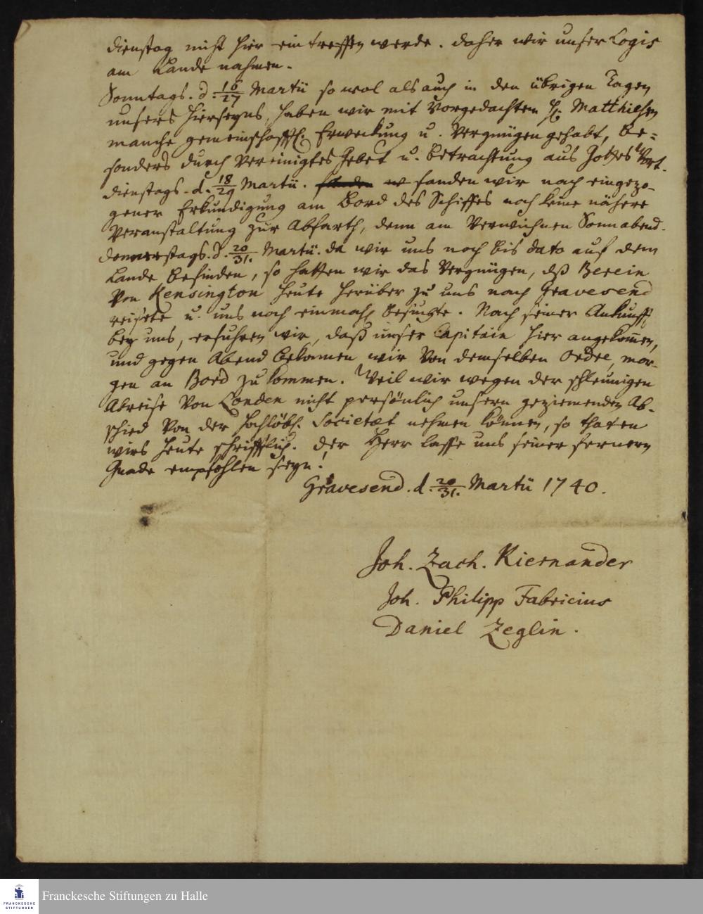 Reisetagebuch von Johann Zacharias Kiernander, Johann Philipp Fabricius und Daniel Zeglin.