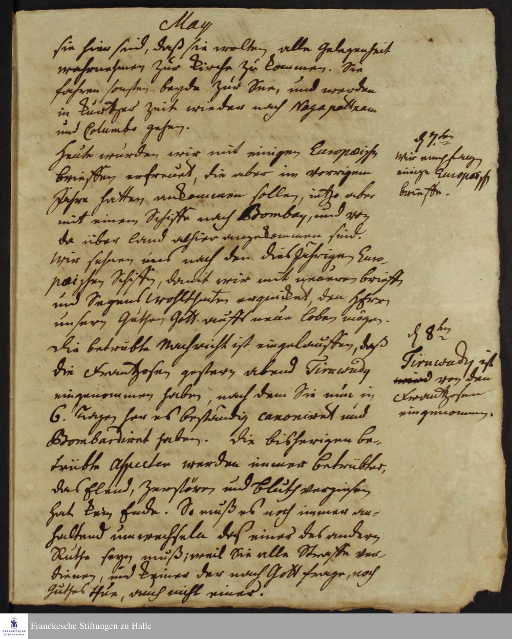 Tagebuch von Johann Zacharias Kiernander und Georg Heinrich Conrad Hüttemann.