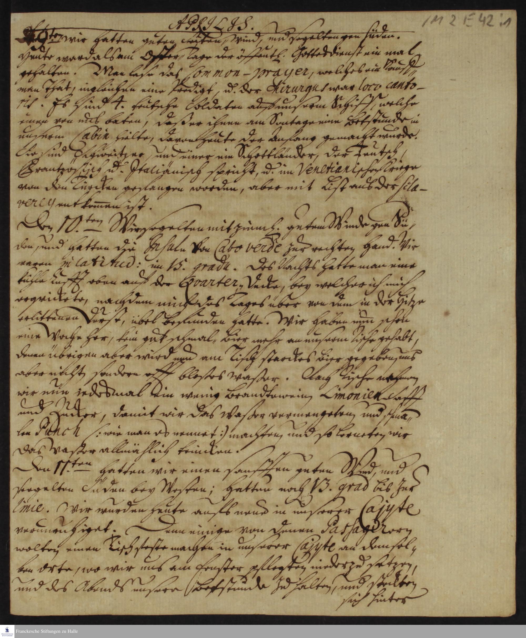 Reisetagebuch von [Benjamin Schultze, Nikolaus Dal und Johann Heinrich Kistemacher].