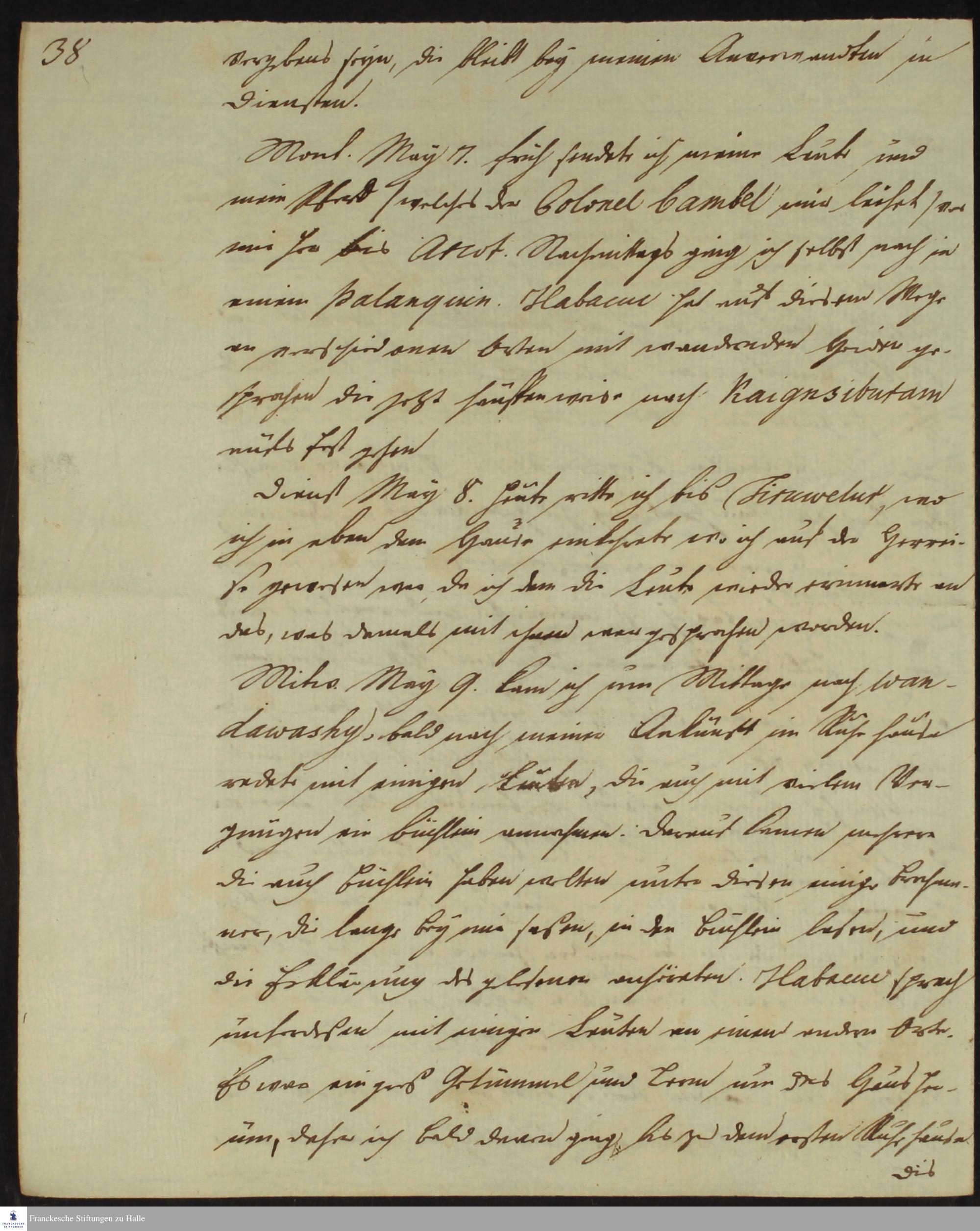 Reisetagebuch von Christian Wilhelm Gericke.