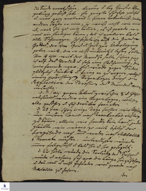 Reisetagebuch von Johann Daniel Mentel.