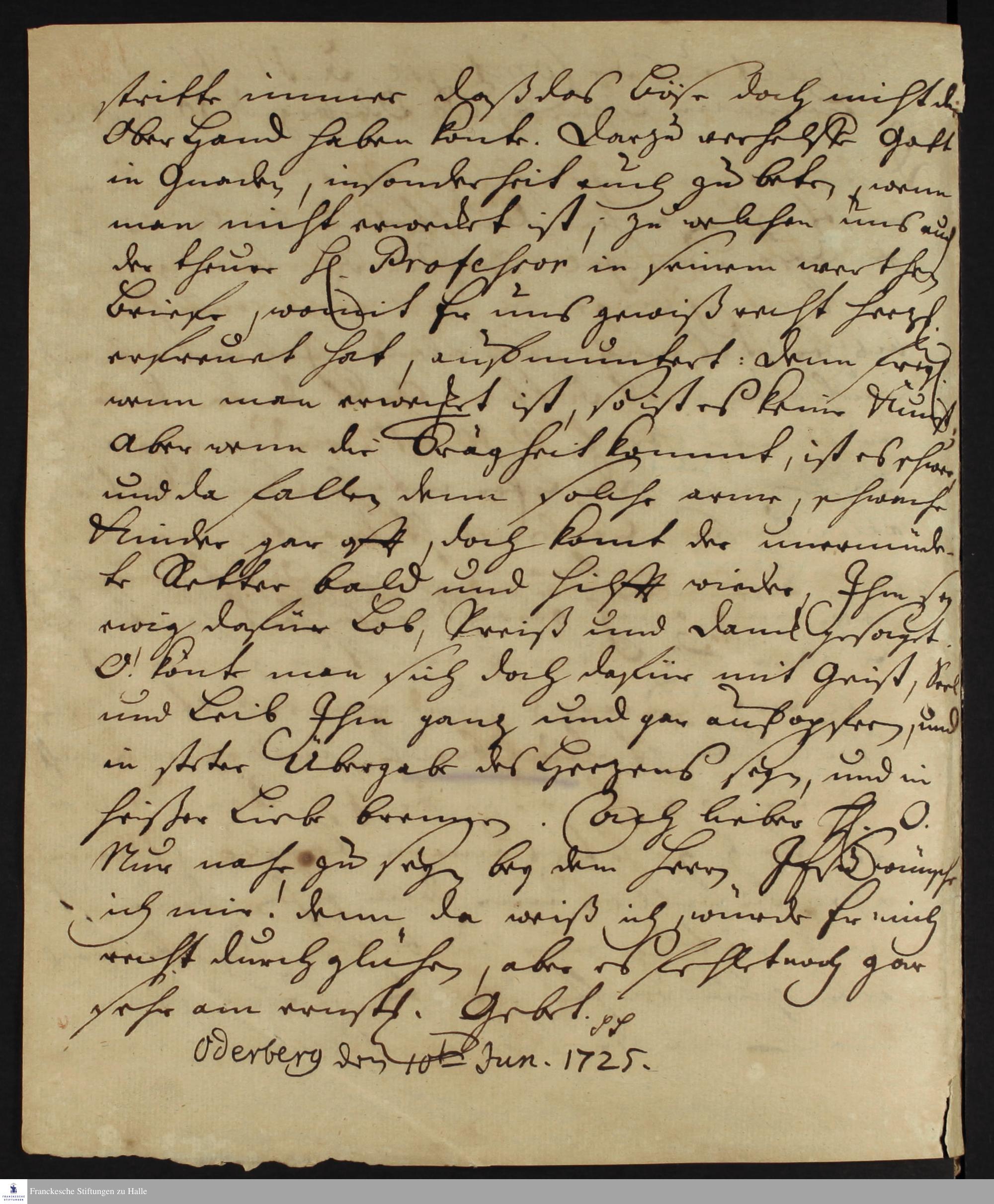 Auszug aus einem Brief von Johanna Eleonore Josepha Henckel v. Donnersmarck an [Johann Christoph Orlich ?].