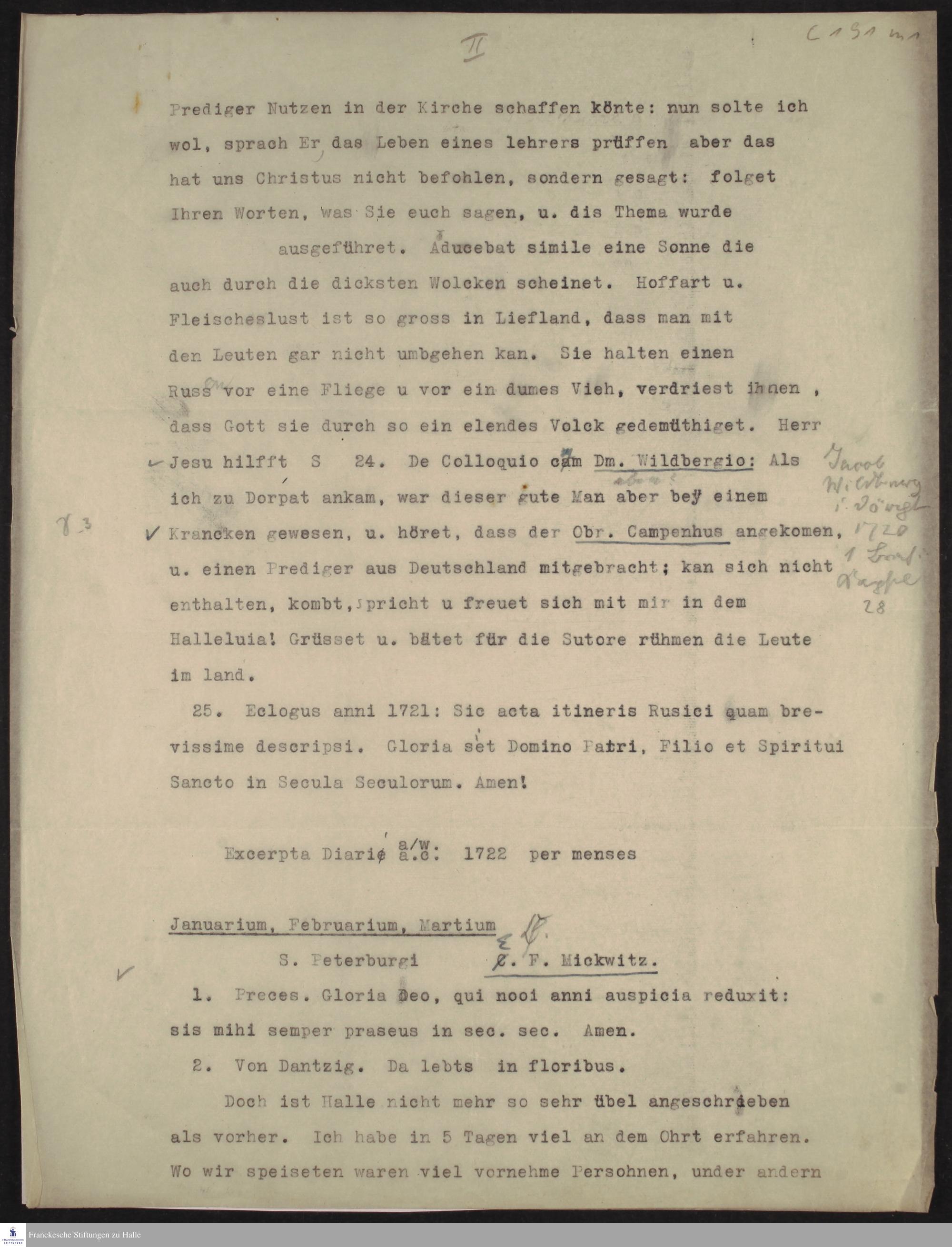 Tagebuchauszüge von Christoph Friedrich Mickwitz.