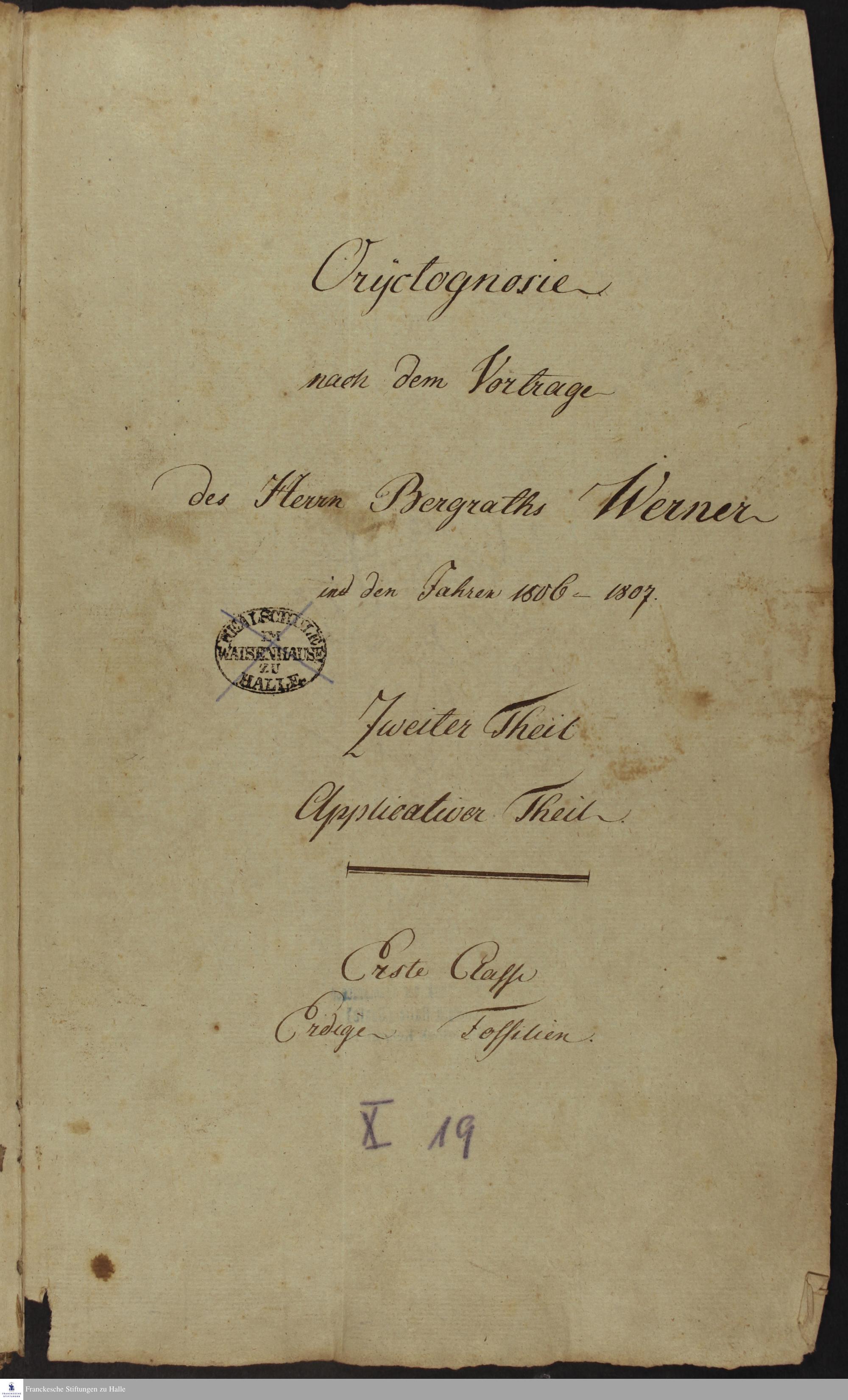 Oryctognosie. Nach dem Vortrage des Herrn Bergraths Werner in den Jahren 1806-1807.