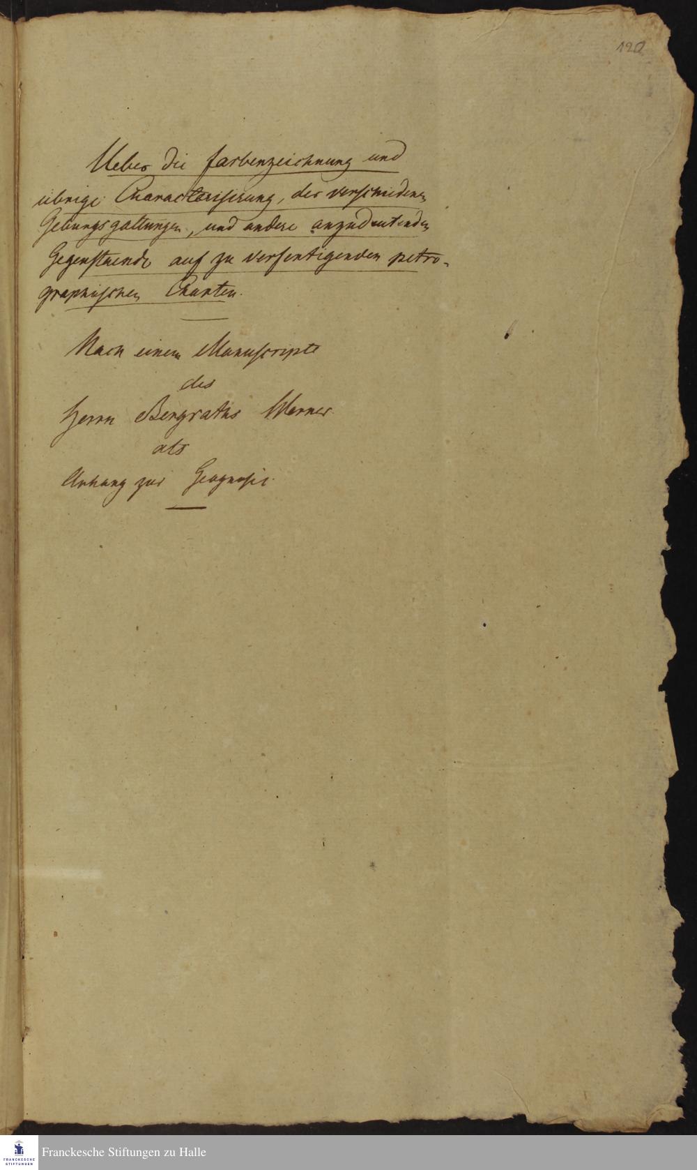 Anhang: Ueber die Farbenzeichnung und übrige Characterisierung der verschiedenen Gebürgsgattungen und andere angedeutetenden Gegenstaende auf zu verfertigenden petrographischen Charten