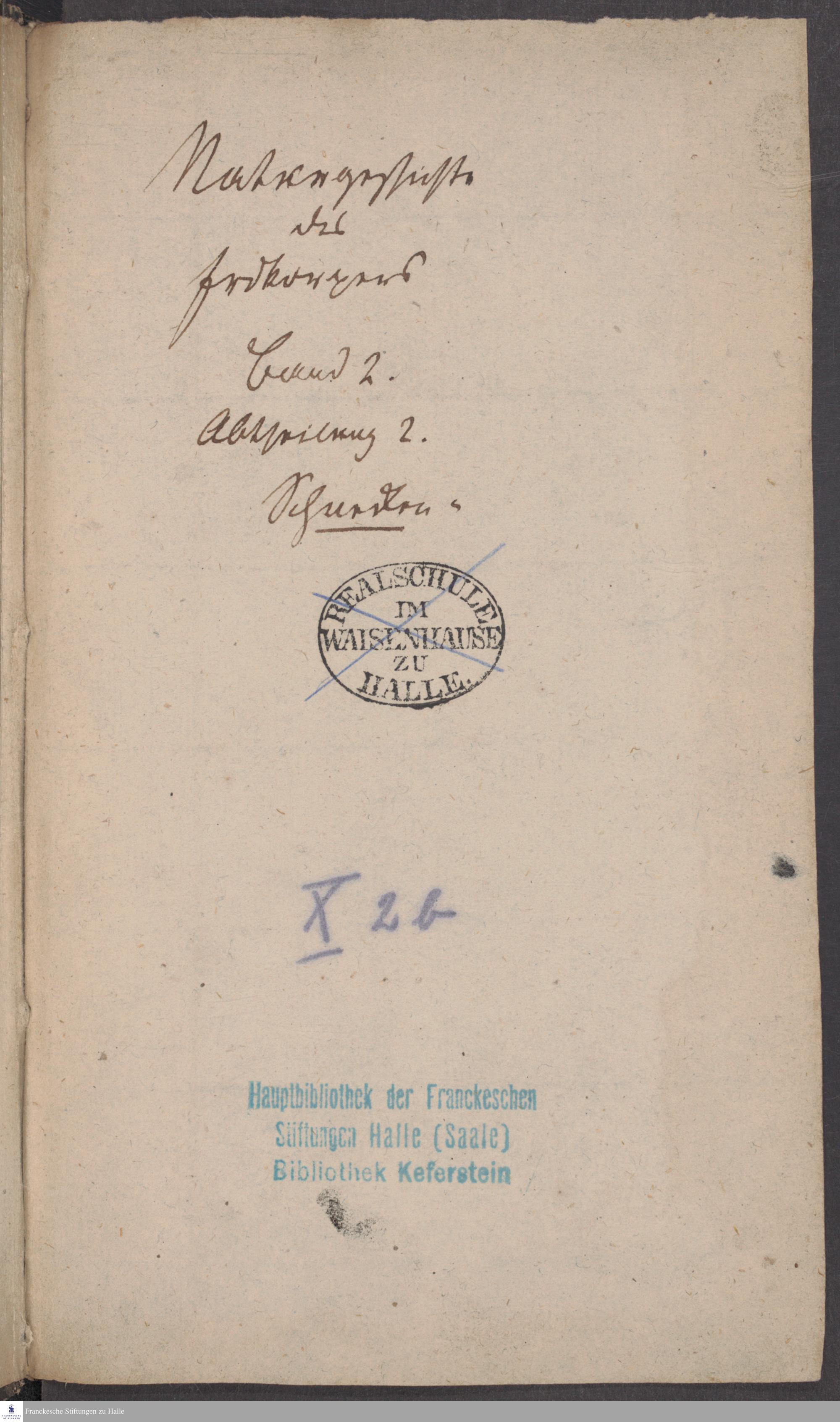 Handschriftliche Anmerkungen und Ergänzungen von Christian Keferstein in einem durchschossenen Exemplar seines Werks "Naturgeschichte des Erdkörpers. Band 2. Zweite Abtheilung. Achter Abschnitt. Die foßilen Mollusken".