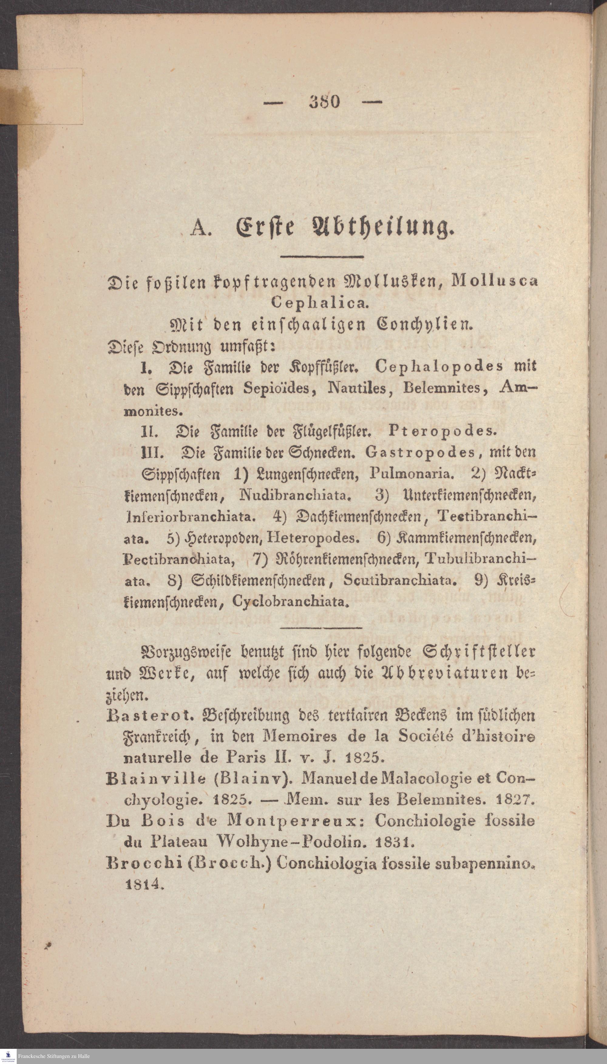 Handschriftliche Anmerkungen und Ergänzungen von Christian Keferstein in einem durchschossenen Exemplar seines Werks "Naturgeschichte des Erdkörpers. Band 2. Zweite Abtheilung. Achter Abschnitt. Die foßilen Mollusken".