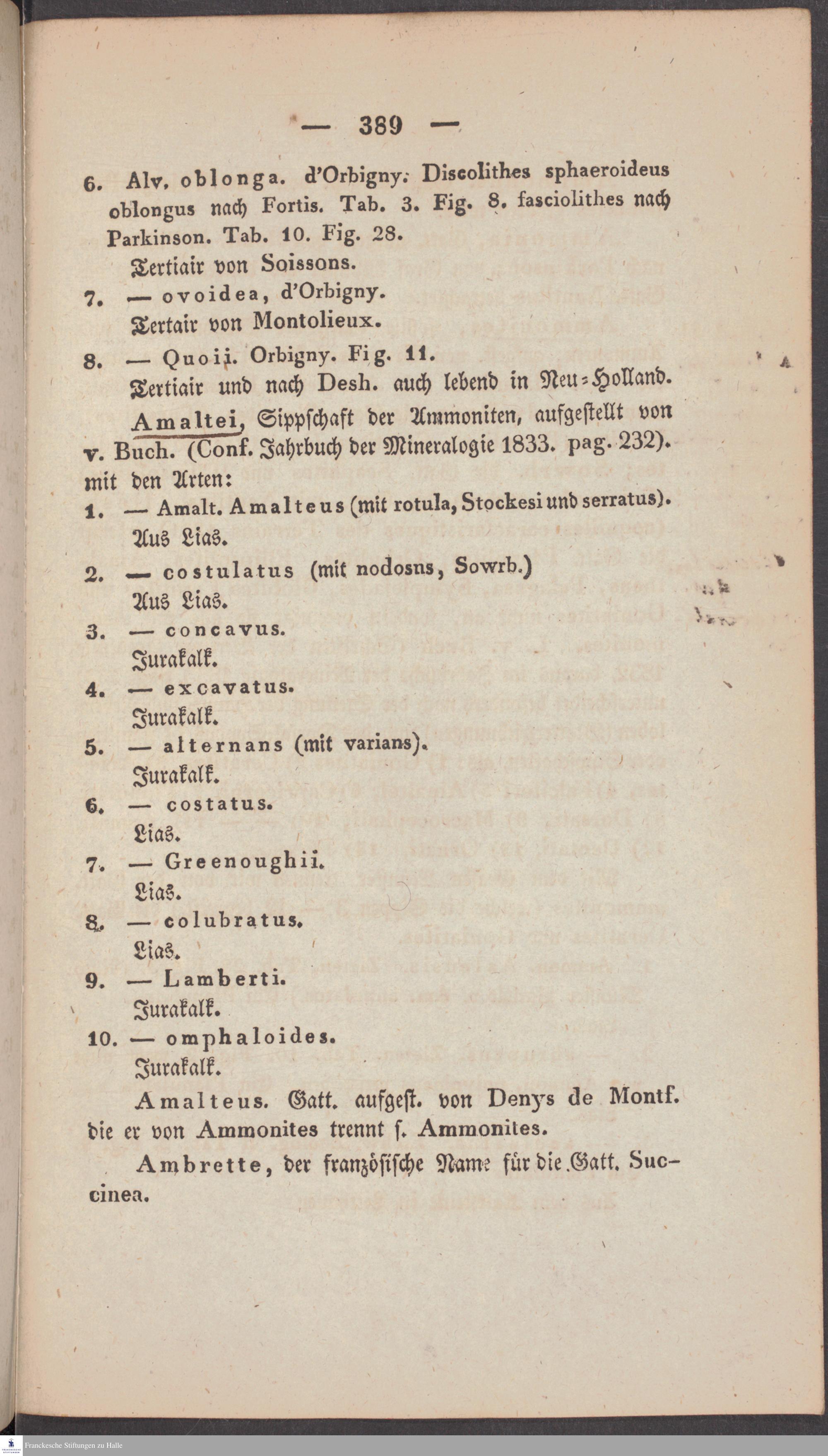 Handschriftliche Anmerkungen und Ergänzungen von Christian Keferstein in einem durchschossenen Exemplar seines Werks "Naturgeschichte des Erdkörpers. Band 2. Zweite Abtheilung. Achter Abschnitt. Die foßilen Mollusken".