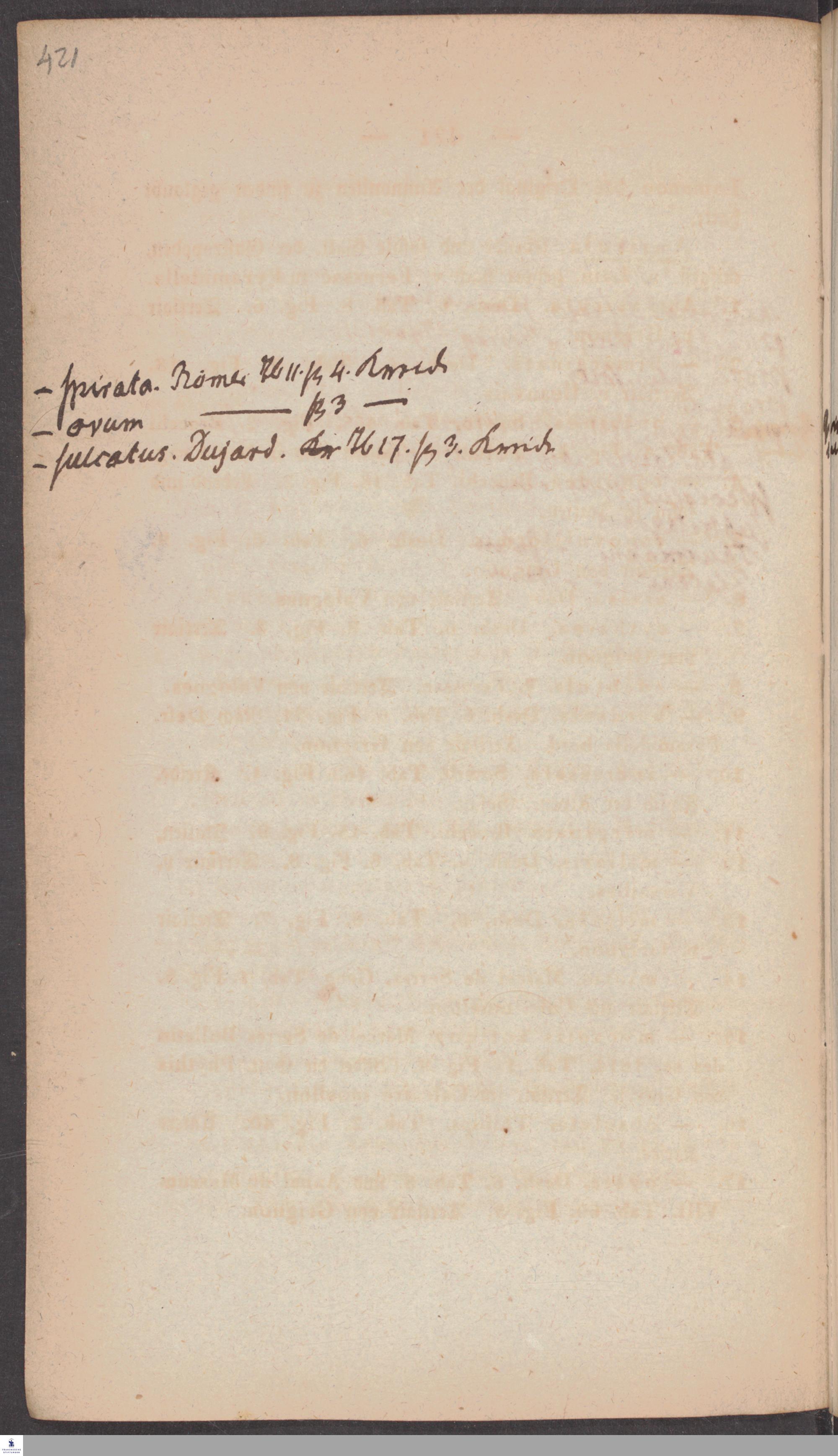Handschriftliche Anmerkungen und Ergänzungen von Christian Keferstein in einem durchschossenen Exemplar seines Werks "Naturgeschichte des Erdkörpers. Band 2. Zweite Abtheilung. Achter Abschnitt. Die foßilen Mollusken".