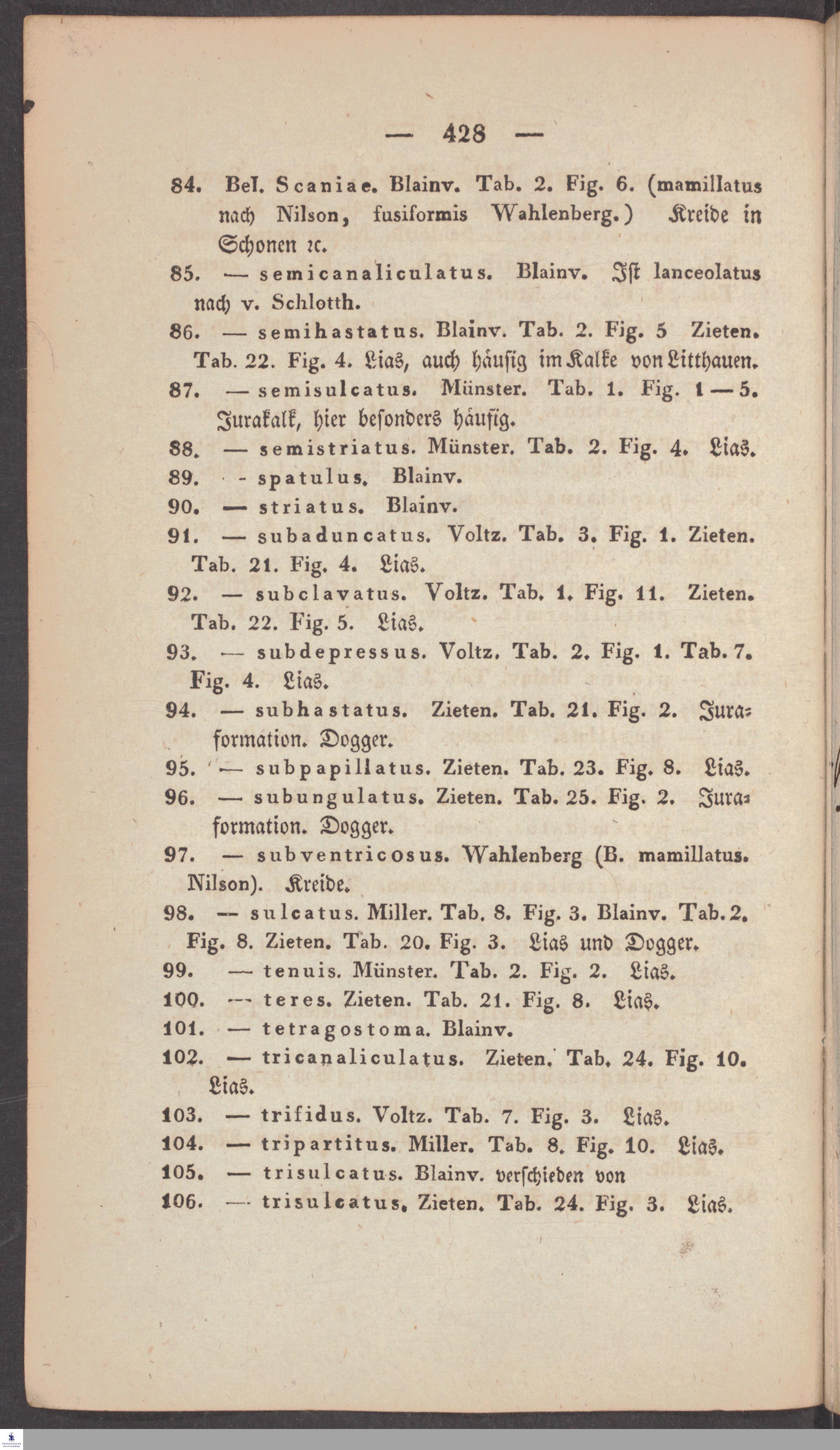 Handschriftliche Anmerkungen und Ergänzungen von Christian Keferstein in einem durchschossenen Exemplar seines Werks "Naturgeschichte des Erdkörpers. Band 2. Zweite Abtheilung. Achter Abschnitt. Die foßilen Mollusken".