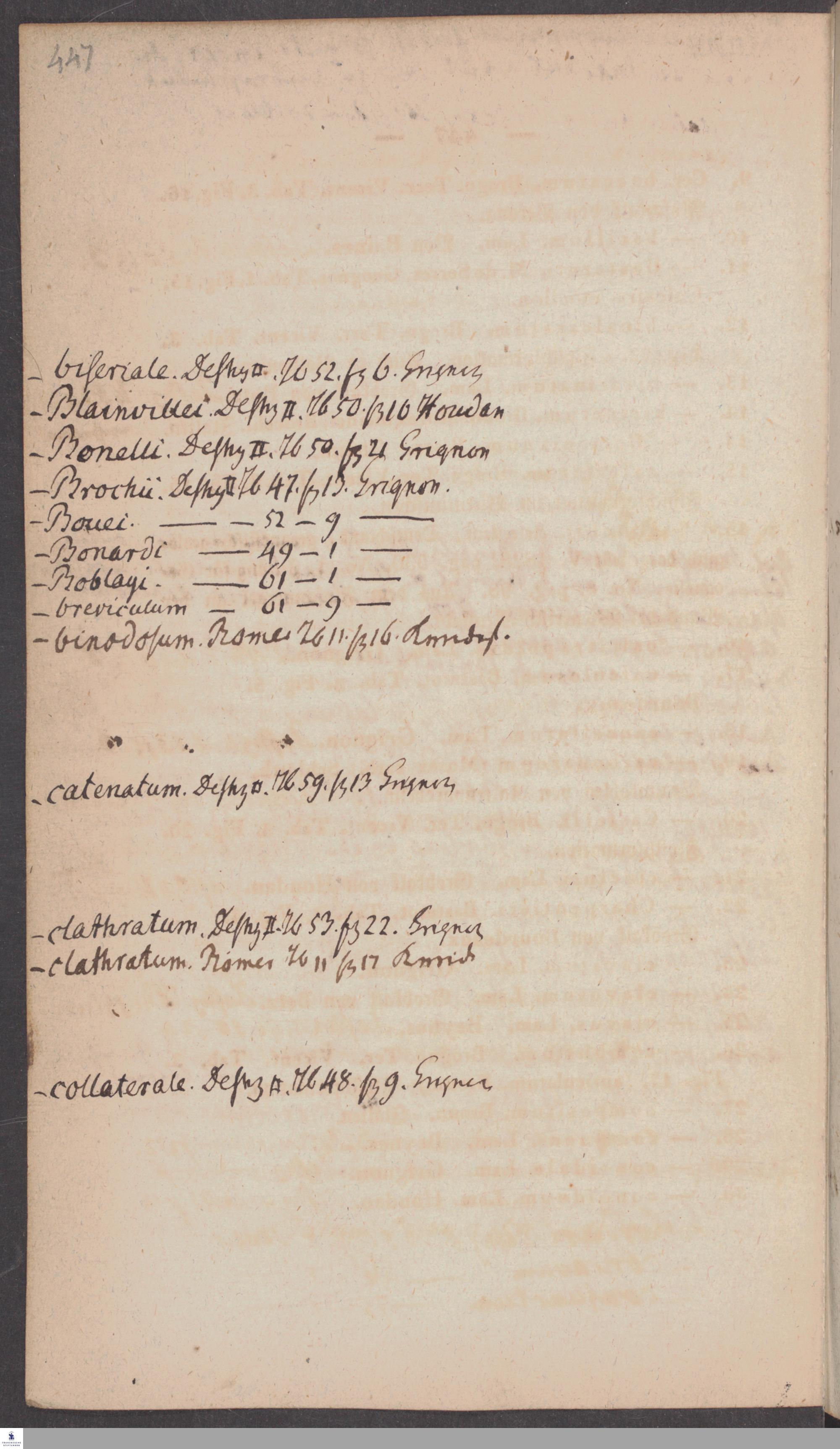 Handschriftliche Anmerkungen und Ergänzungen von Christian Keferstein in einem durchschossenen Exemplar seines Werks "Naturgeschichte des Erdkörpers. Band 2. Zweite Abtheilung. Achter Abschnitt. Die foßilen Mollusken".