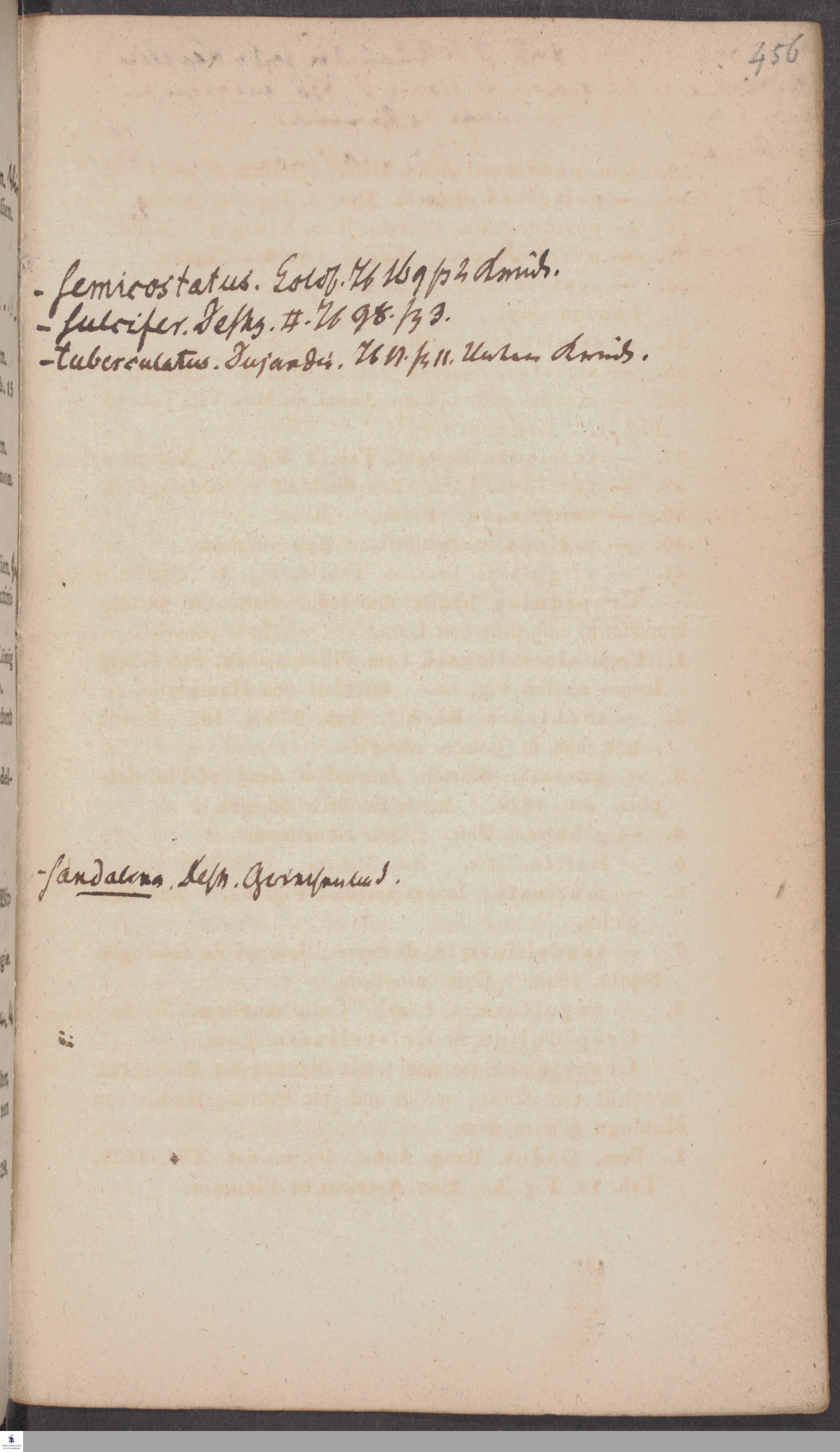 Handschriftliche Anmerkungen und Ergänzungen von Christian Keferstein in einem durchschossenen Exemplar seines Werks "Naturgeschichte des Erdkörpers. Band 2. Zweite Abtheilung. Achter Abschnitt. Die foßilen Mollusken".
