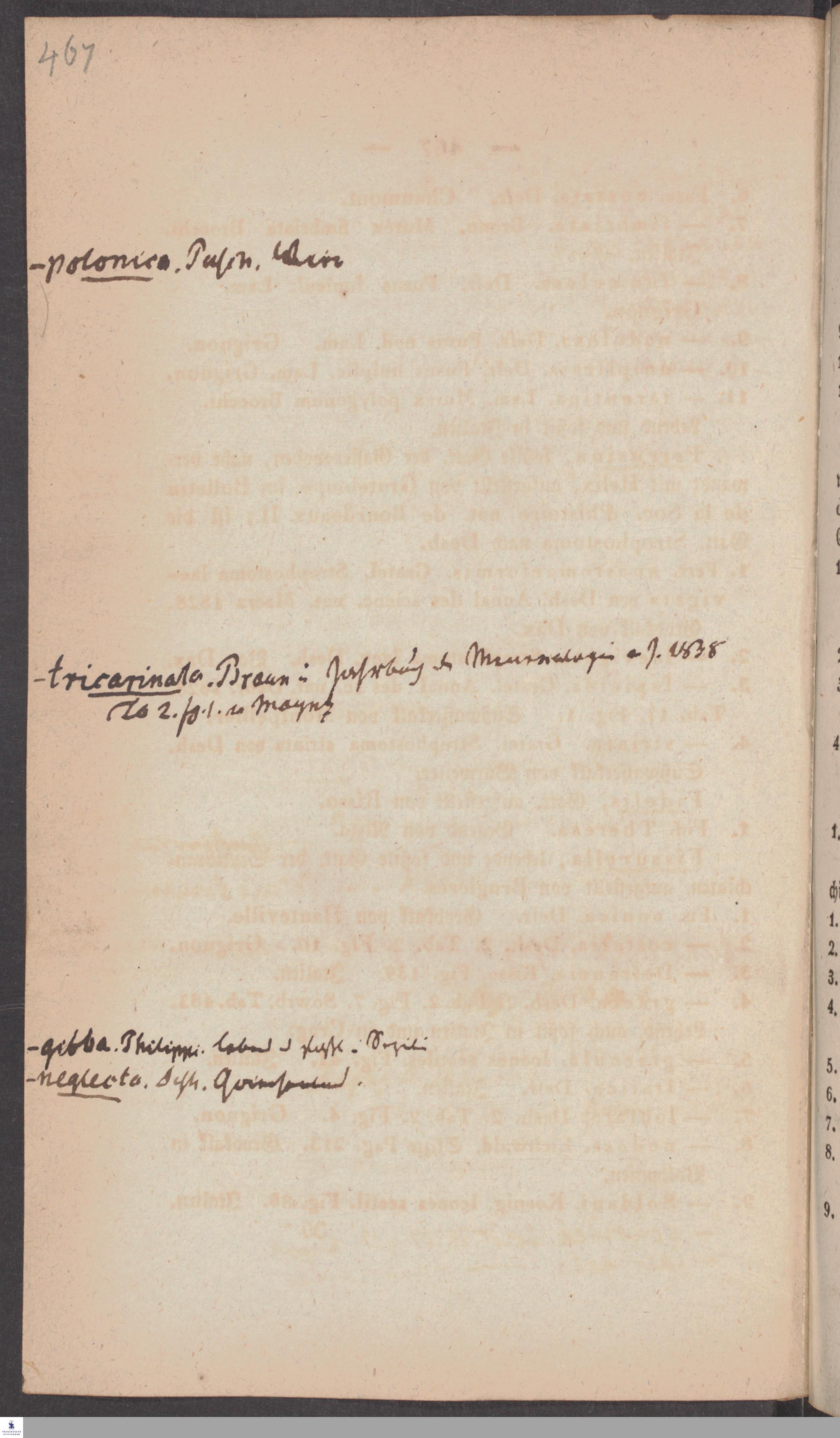 Handschriftliche Anmerkungen und Ergänzungen von Christian Keferstein in einem durchschossenen Exemplar seines Werks "Naturgeschichte des Erdkörpers. Band 2. Zweite Abtheilung. Achter Abschnitt. Die foßilen Mollusken".