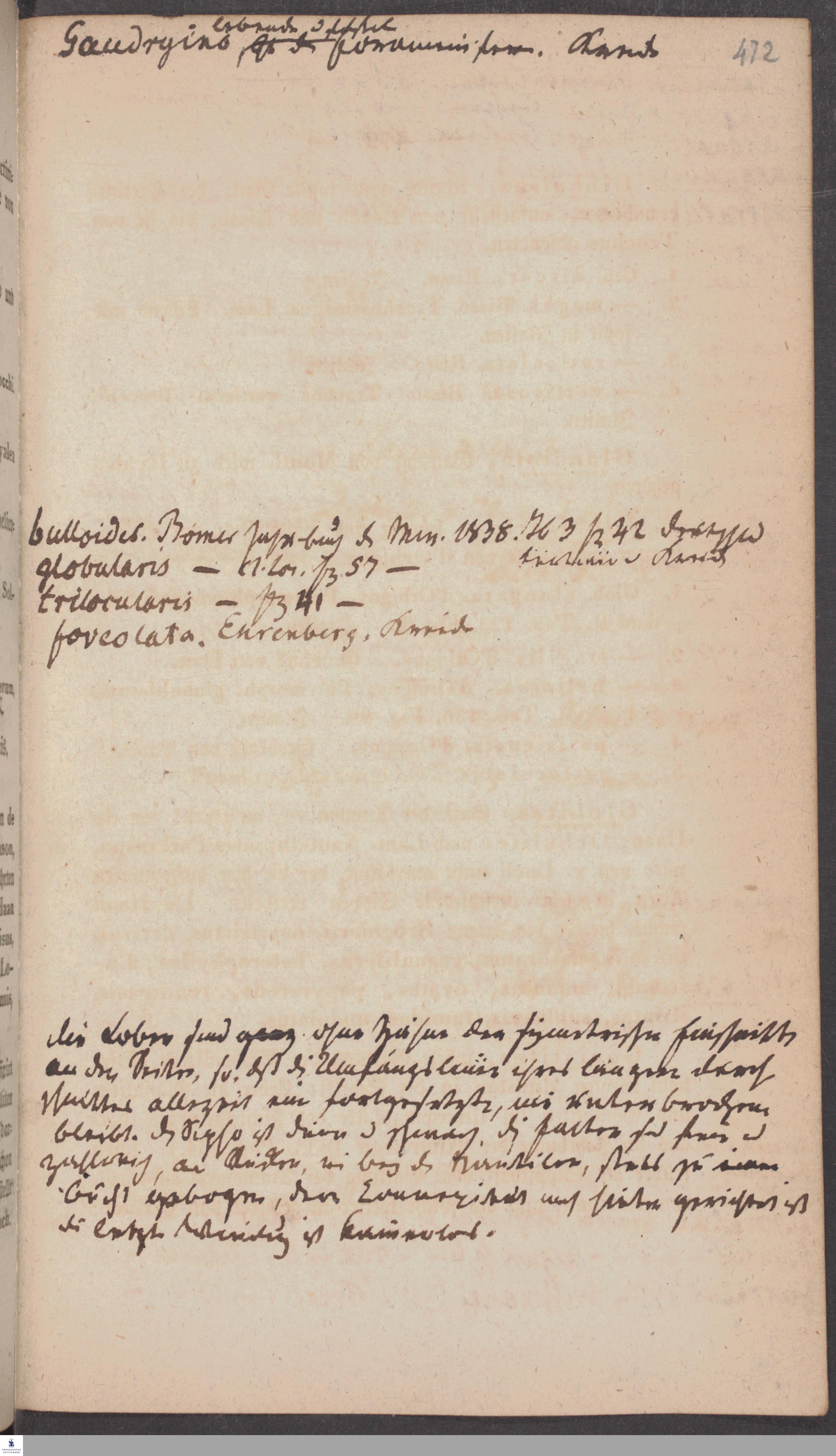 Handschriftliche Anmerkungen und Ergänzungen von Christian Keferstein in einem durchschossenen Exemplar seines Werks "Naturgeschichte des Erdkörpers. Band 2. Zweite Abtheilung. Achter Abschnitt. Die foßilen Mollusken".