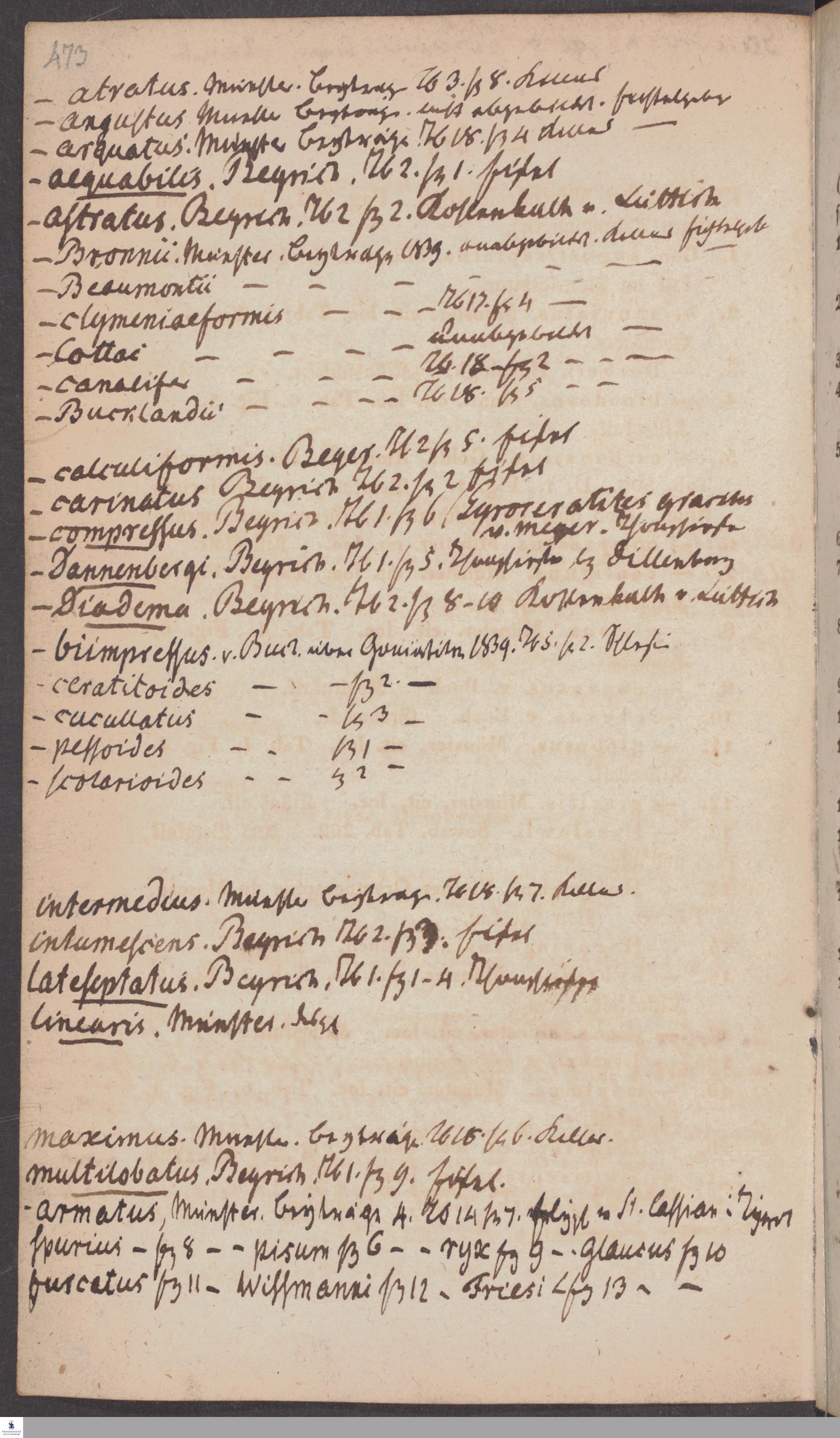 Handschriftliche Anmerkungen und Ergänzungen von Christian Keferstein in einem durchschossenen Exemplar seines Werks "Naturgeschichte des Erdkörpers. Band 2. Zweite Abtheilung. Achter Abschnitt. Die foßilen Mollusken".
