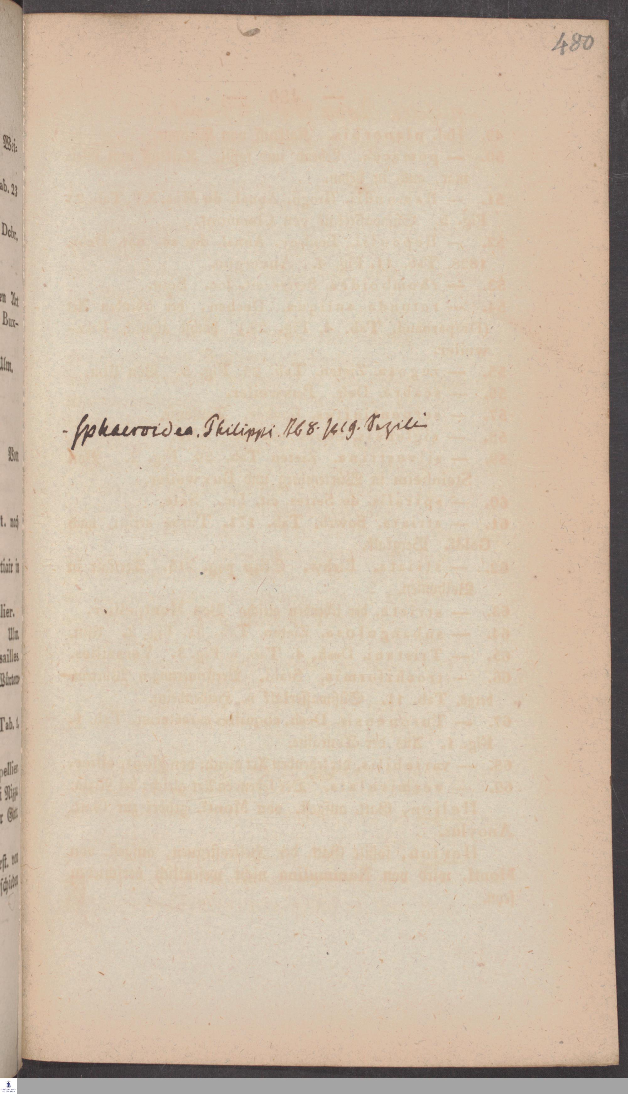Handschriftliche Anmerkungen und Ergänzungen von Christian Keferstein in einem durchschossenen Exemplar seines Werks "Naturgeschichte des Erdkörpers. Band 2. Zweite Abtheilung. Achter Abschnitt. Die foßilen Mollusken".