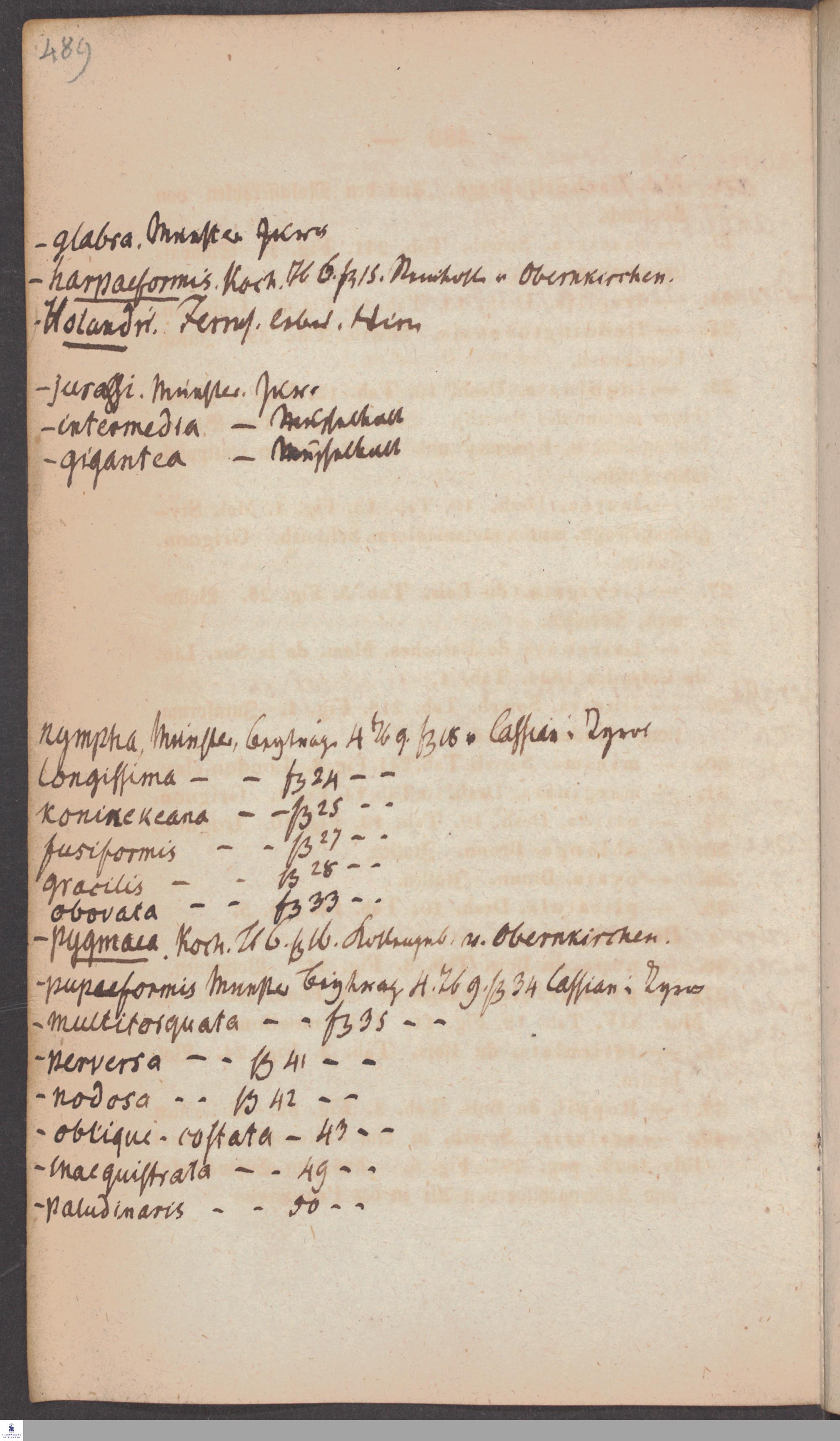 Handschriftliche Anmerkungen und Ergänzungen von Christian Keferstein in einem durchschossenen Exemplar seines Werks "Naturgeschichte des Erdkörpers. Band 2. Zweite Abtheilung. Achter Abschnitt. Die foßilen Mollusken".