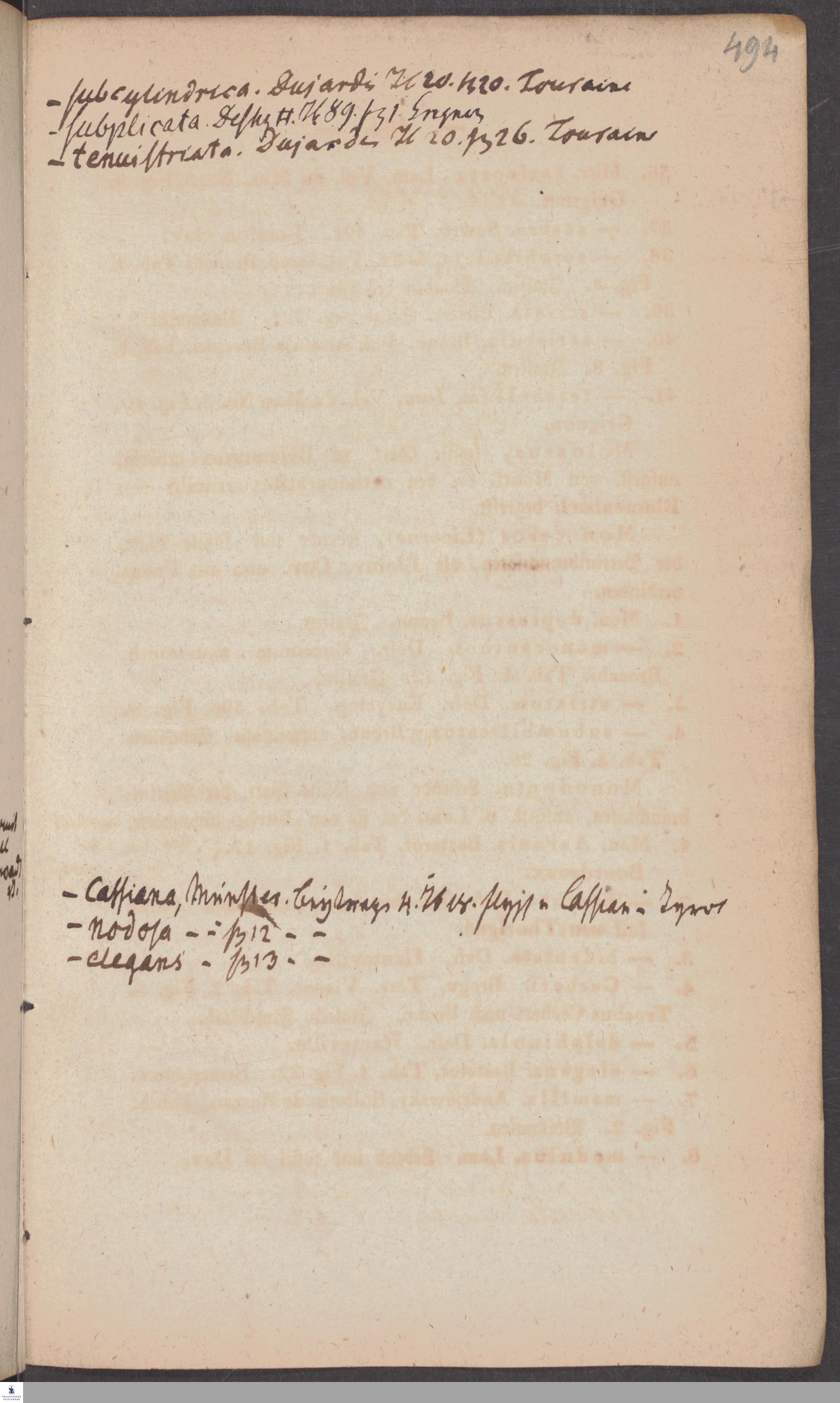 Handschriftliche Anmerkungen und Ergänzungen von Christian Keferstein in einem durchschossenen Exemplar seines Werks "Naturgeschichte des Erdkörpers. Band 2. Zweite Abtheilung. Achter Abschnitt. Die foßilen Mollusken".
