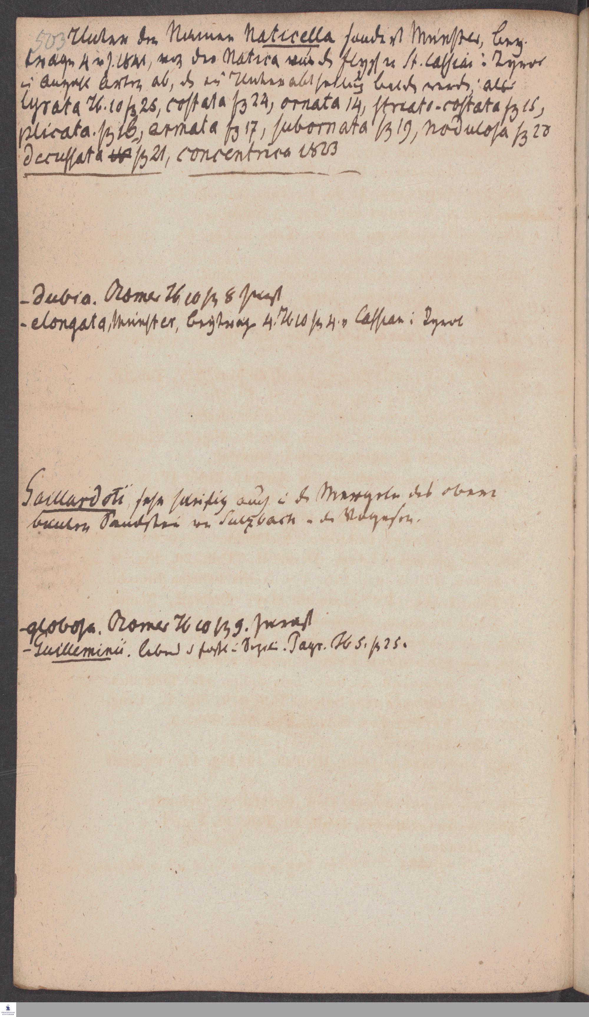 Handschriftliche Anmerkungen und Ergänzungen von Christian Keferstein in einem durchschossenen Exemplar seines Werks "Naturgeschichte des Erdkörpers. Band 2. Zweite Abtheilung. Achter Abschnitt. Die foßilen Mollusken".