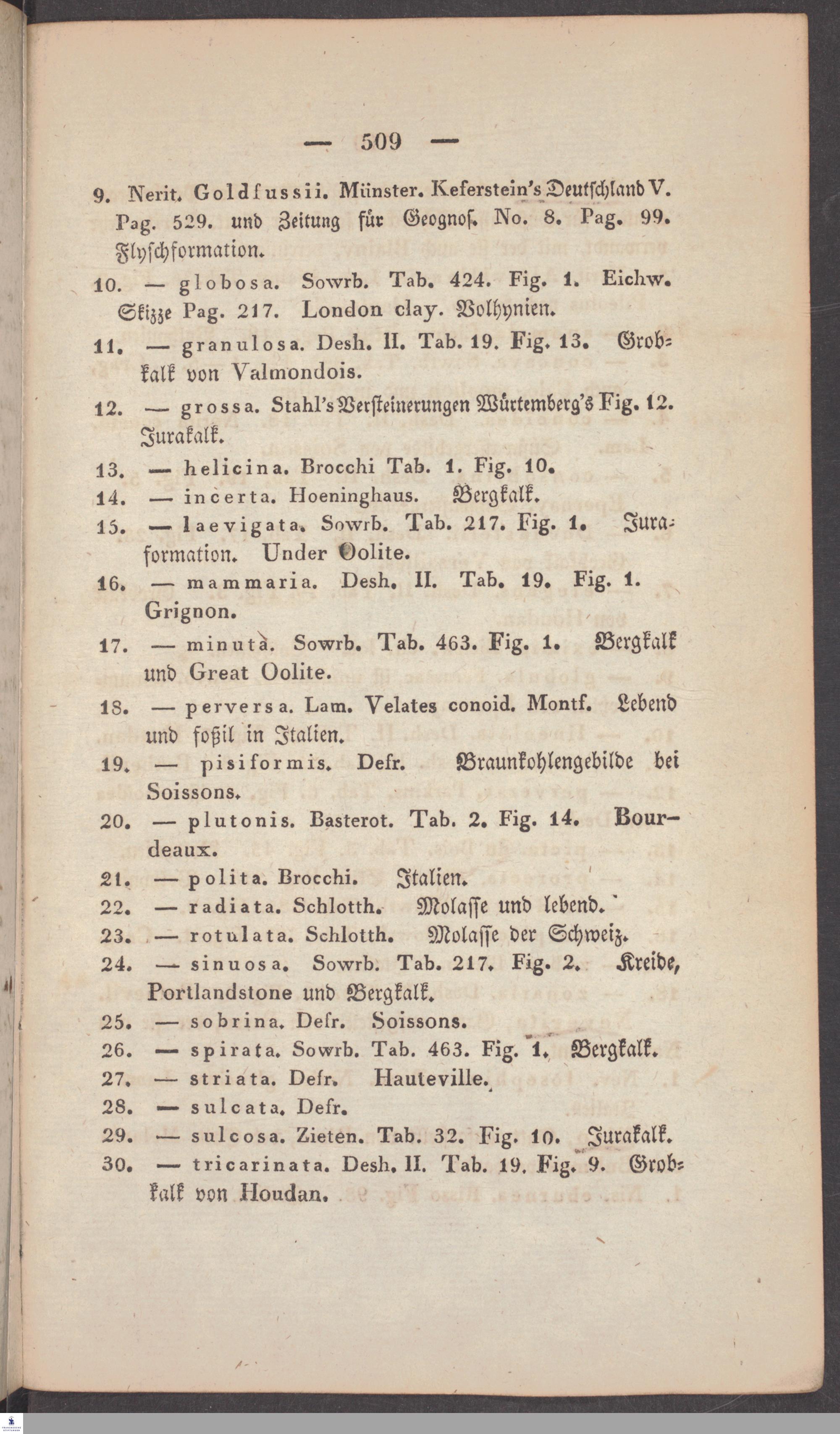 Handschriftliche Anmerkungen und Ergänzungen von Christian Keferstein in einem durchschossenen Exemplar seines Werks "Naturgeschichte des Erdkörpers. Band 2. Zweite Abtheilung. Achter Abschnitt. Die foßilen Mollusken".