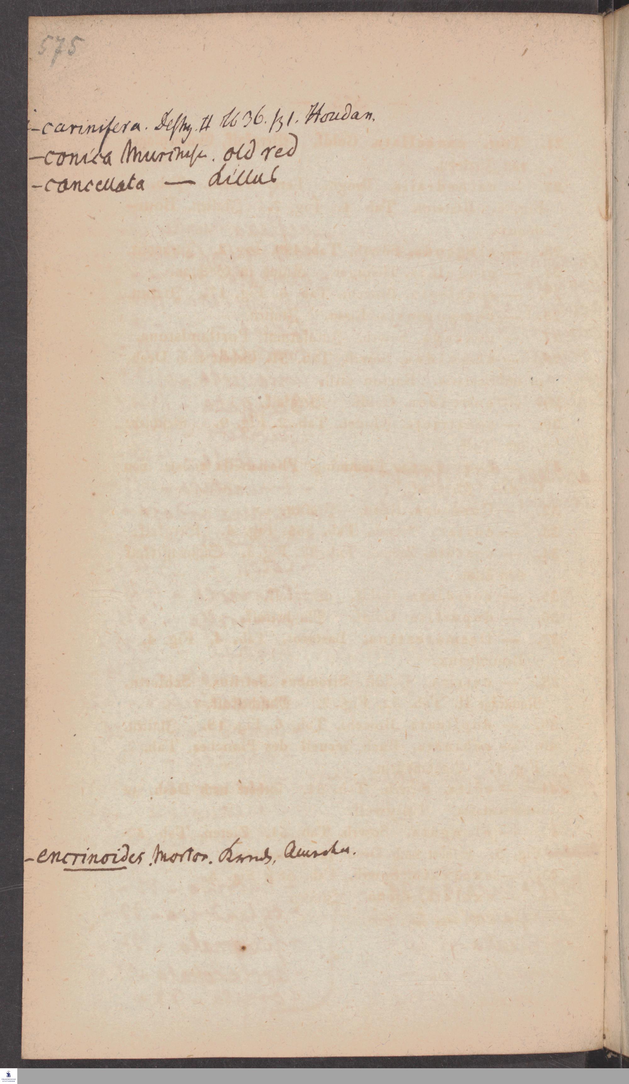 Handschriftliche Anmerkungen und Ergänzungen von Christian Keferstein in einem durchschossenen Exemplar seines Werks "Naturgeschichte des Erdkörpers. Band 2. Zweite Abtheilung. Achter Abschnitt. Die foßilen Mollusken".