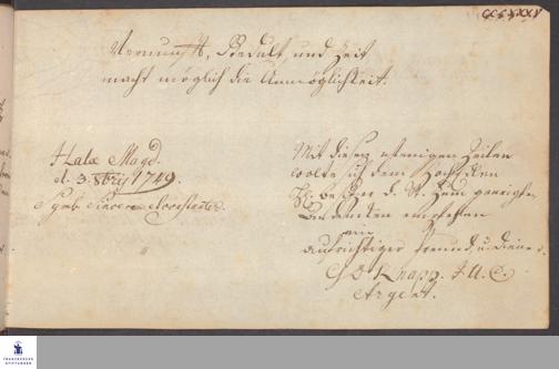 Gouache: Ansicht des Historischen Waisenhauses mit Vorplatz und Blick zum Markt in Halle (Saale)