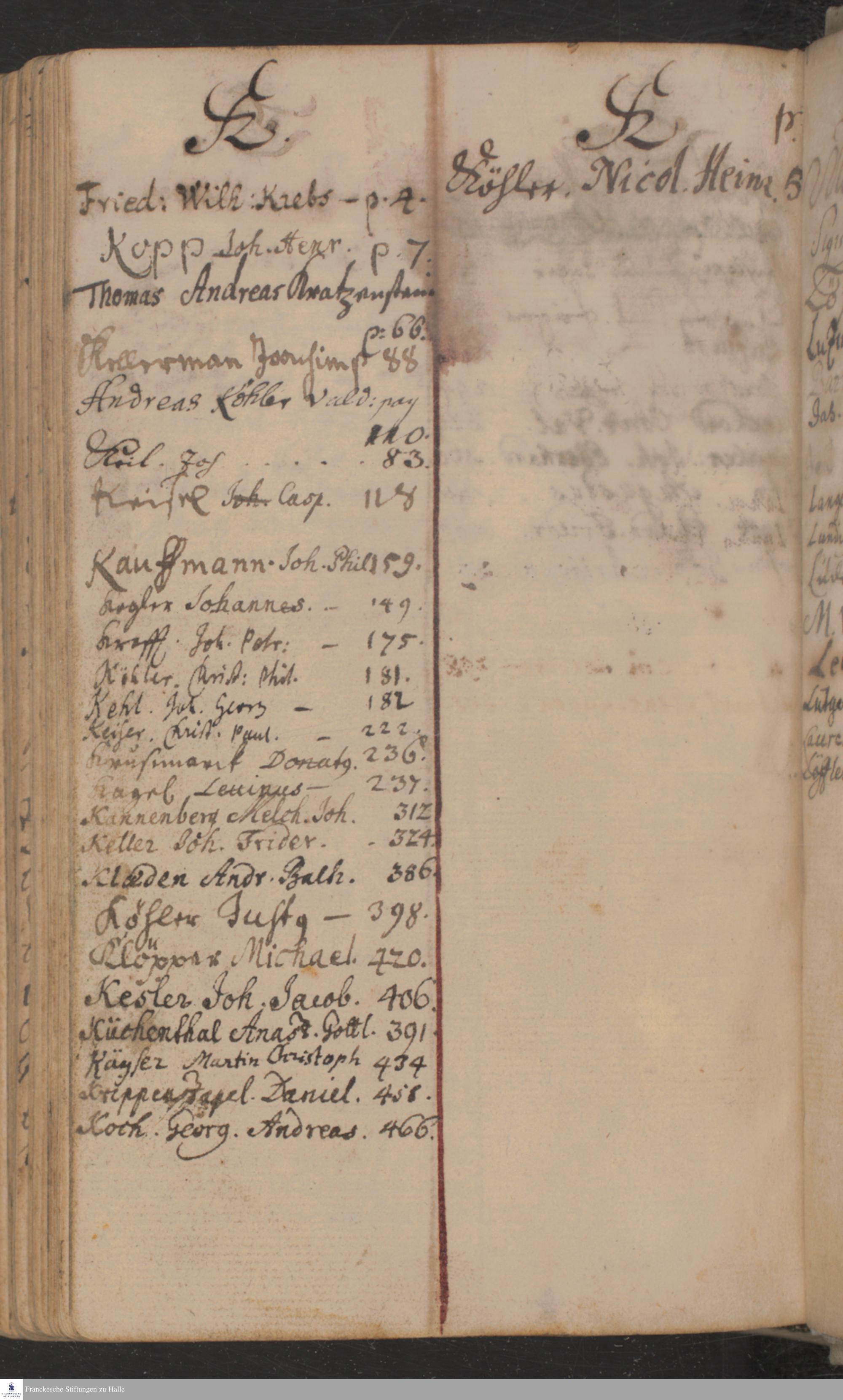Freitischlerverzeichnis 1705-1713.