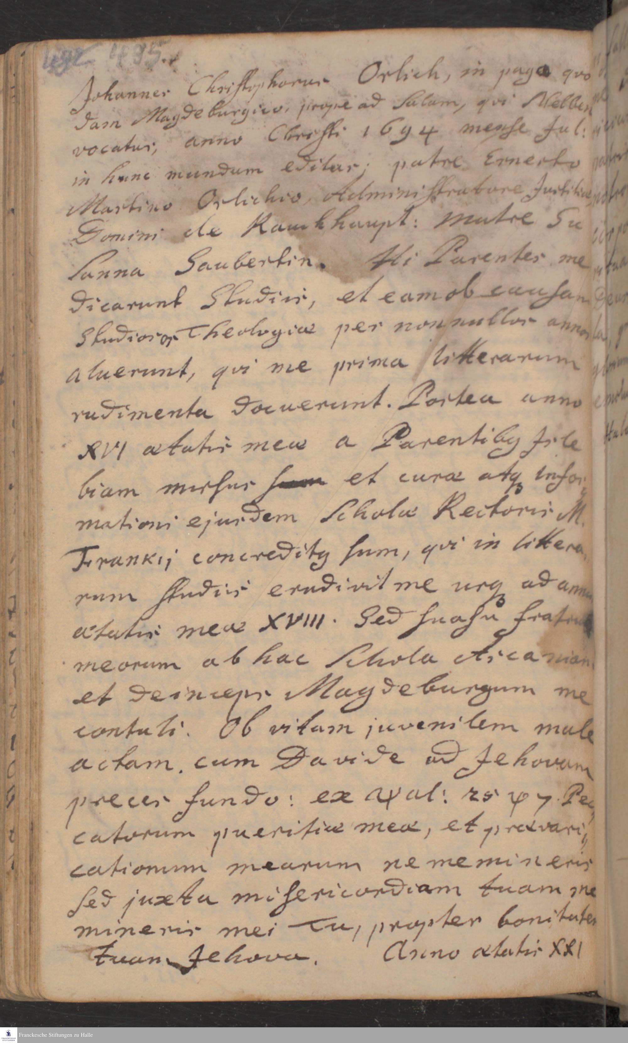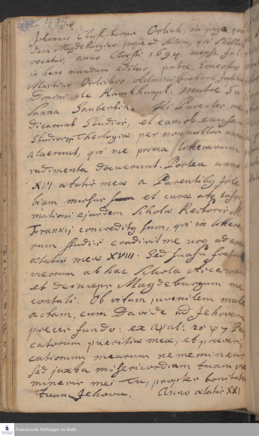 Lebenslauf von Johann Christoph Orlich.