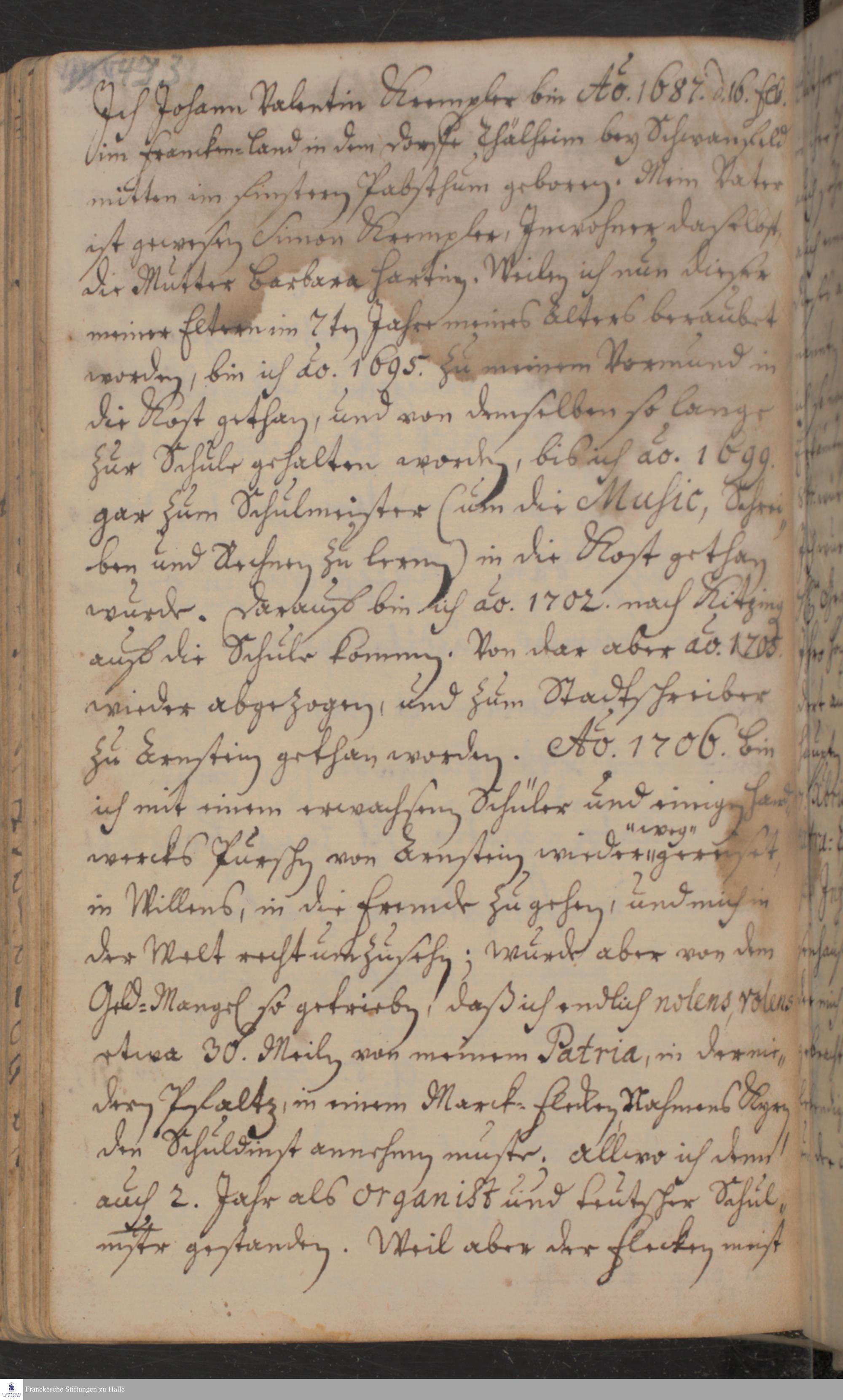 Lebenslauf von Johann Valentin Krempler.