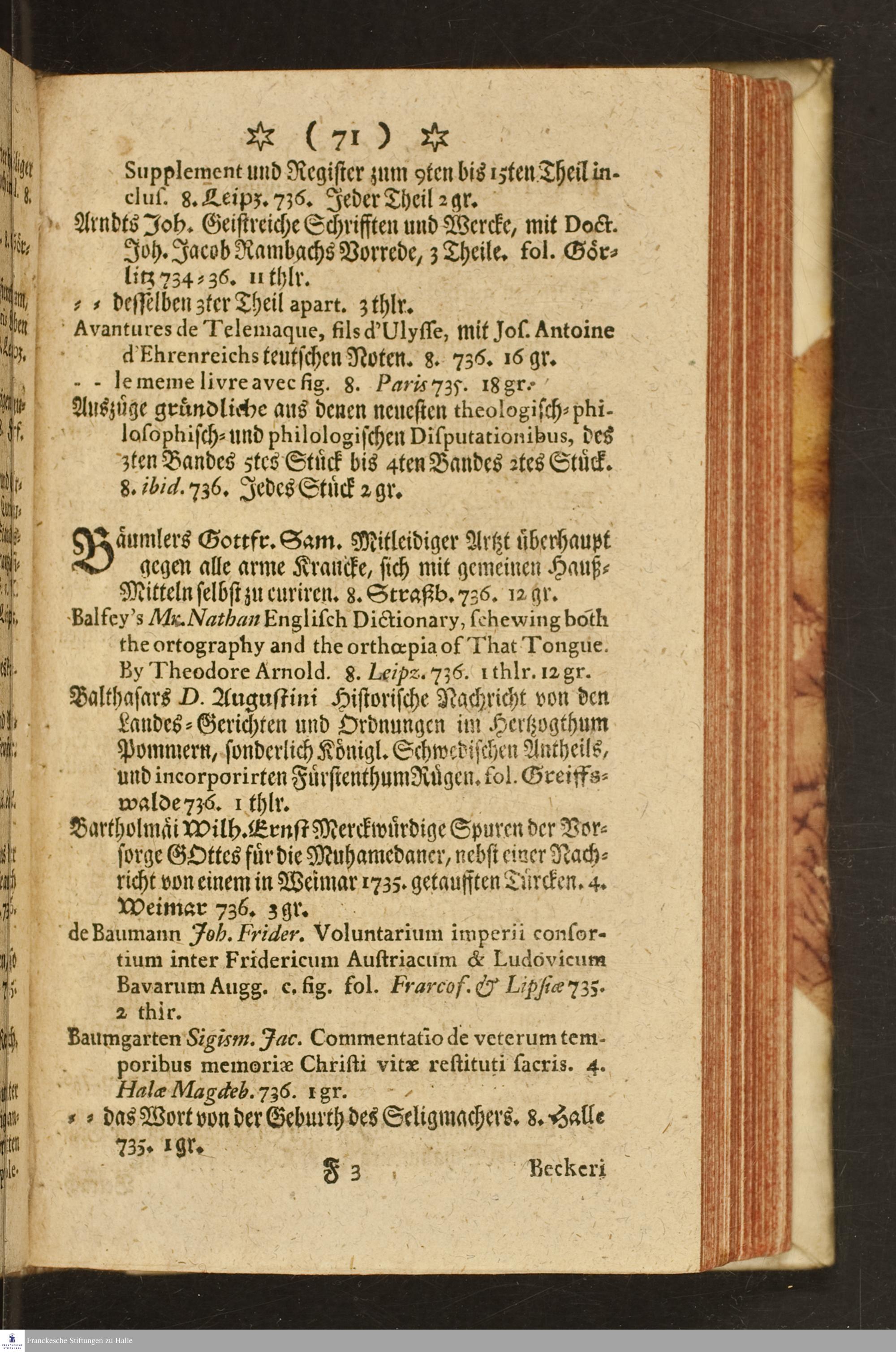 Catalogus universalis derer Bücher, welche vor den beygesetzten Preiß zu haben sind bey dem Buch-Händler Joh. Andreas Rüdiger zu Berlin und Potsdam