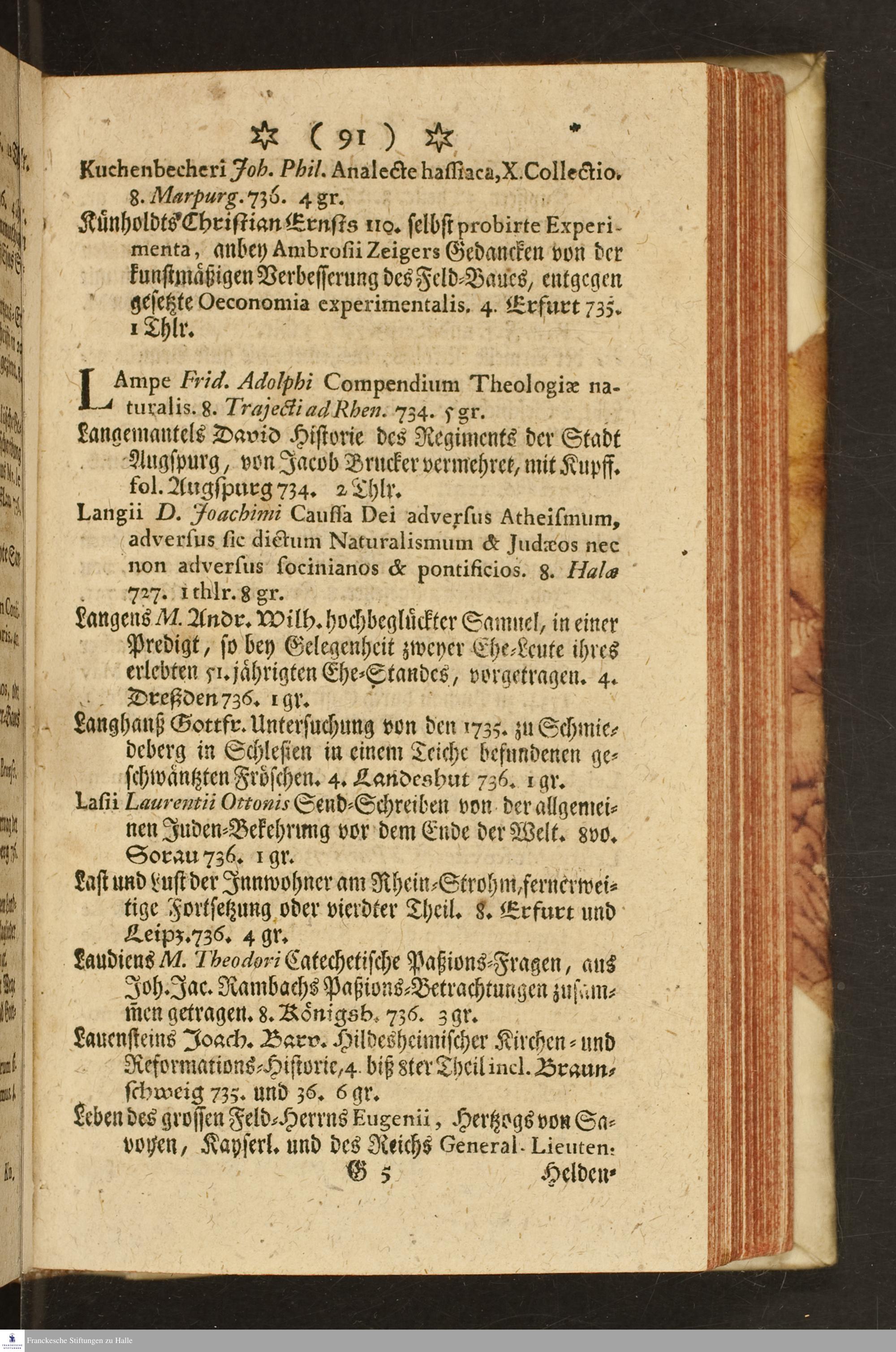 Catalogus universalis derer Bücher, welche vor den beygesetzten Preiß zu haben sind bey dem Buch-Händler Joh. Andreas Rüdiger zu Berlin und Potsdam