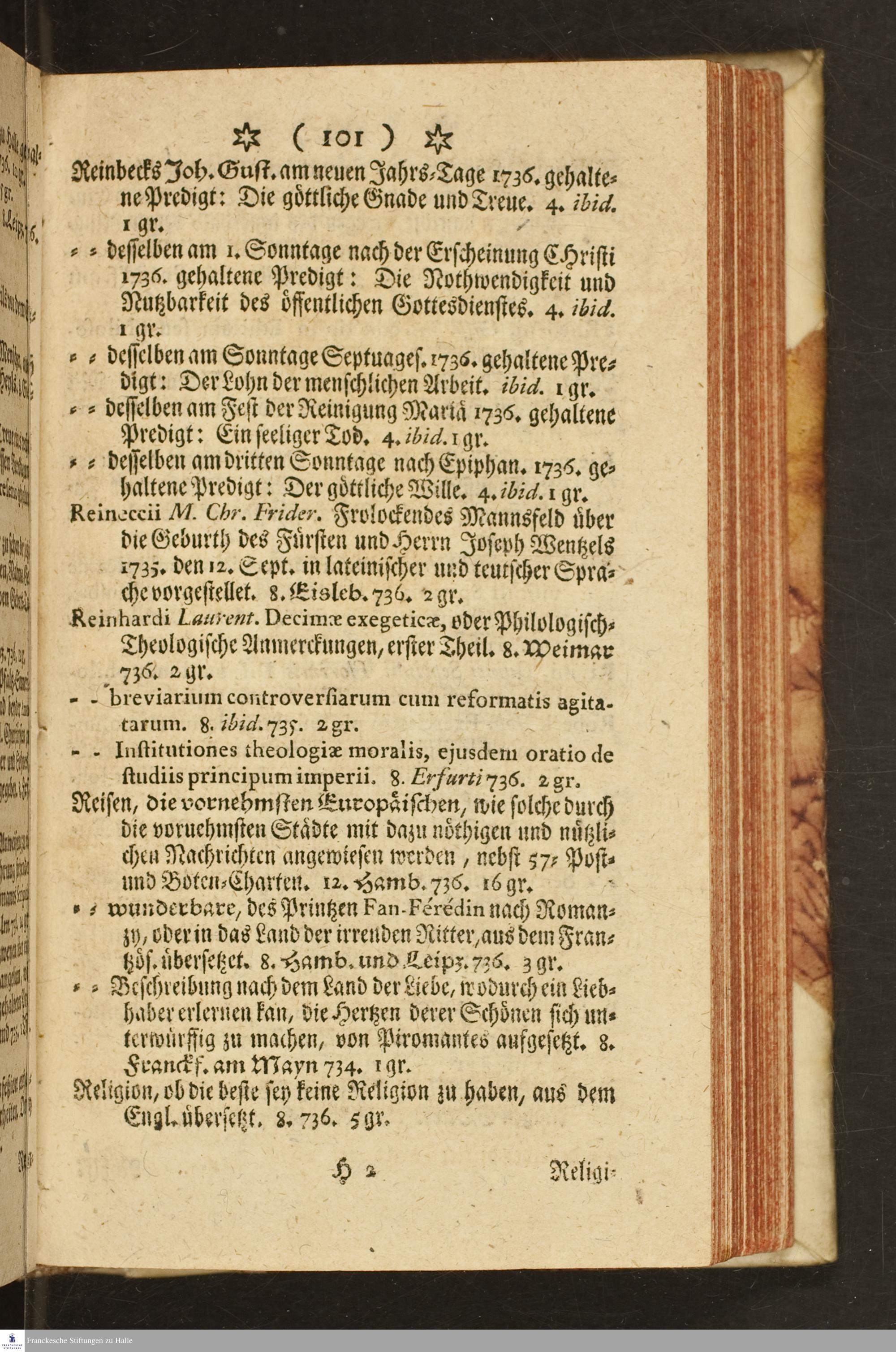 Catalogus universalis derer Bücher, welche vor den beygesetzten Preiß zu haben sind bey dem Buch-Händler Joh. Andreas Rüdiger zu Berlin und Potsdam