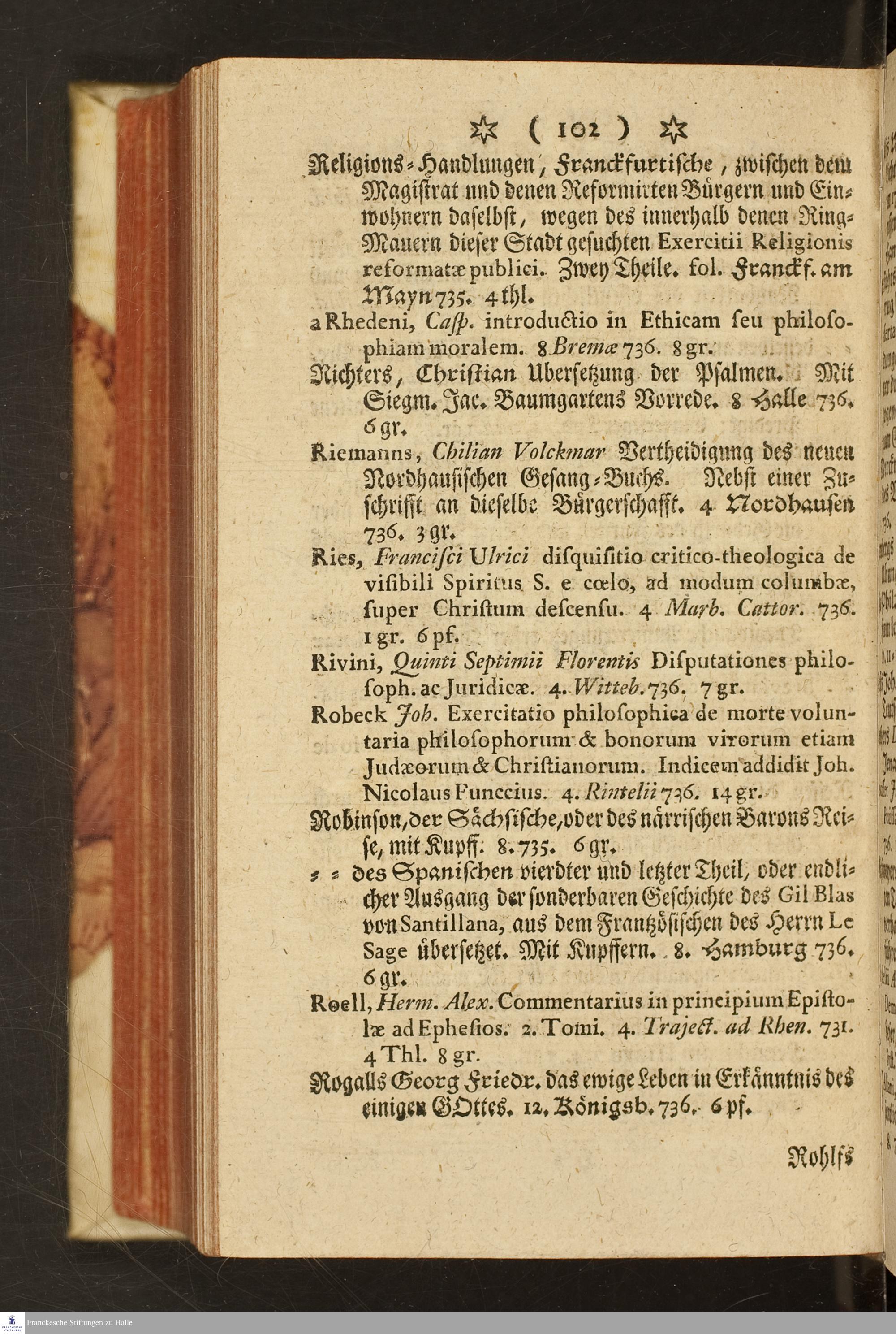 Catalogus universalis derer Bücher, welche vor den beygesetzten Preiß zu haben sind bey dem Buch-Händler Joh. Andreas Rüdiger zu Berlin und Potsdam
