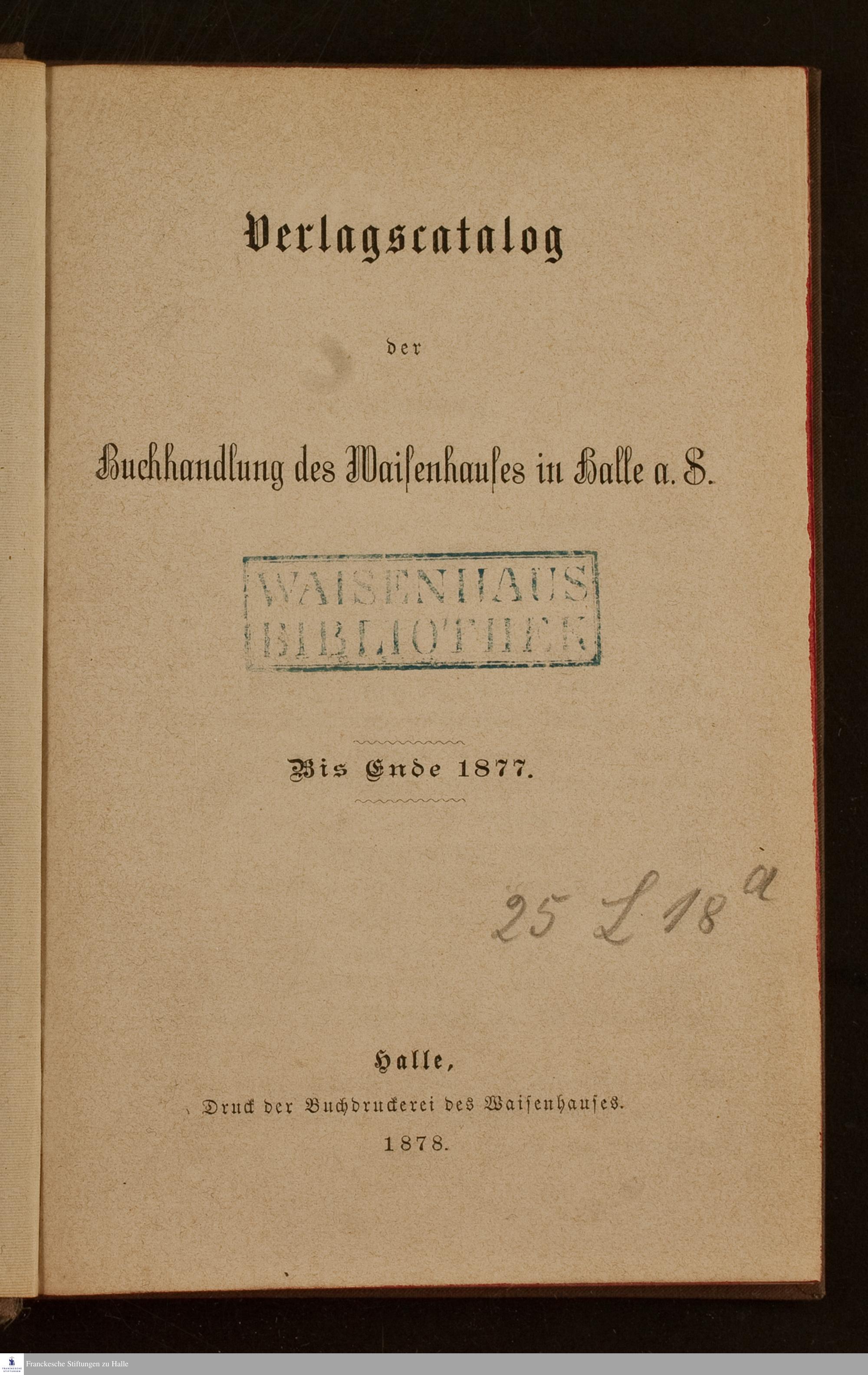 Verlags-Katalog der Buchhandlung des Waisenhauses in Halle a. S