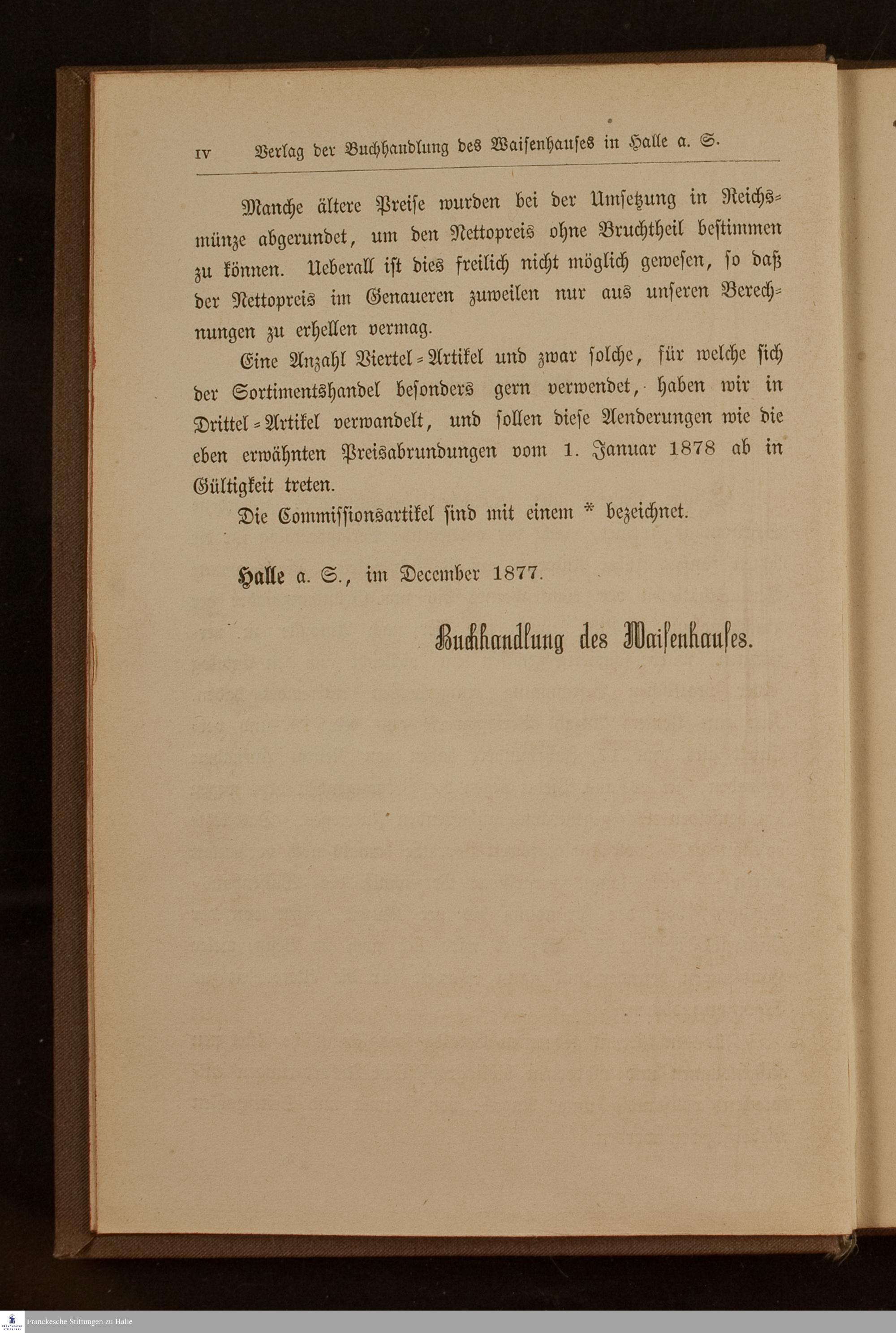 Verlags-Katalog der Buchhandlung des Waisenhauses in Halle a. S