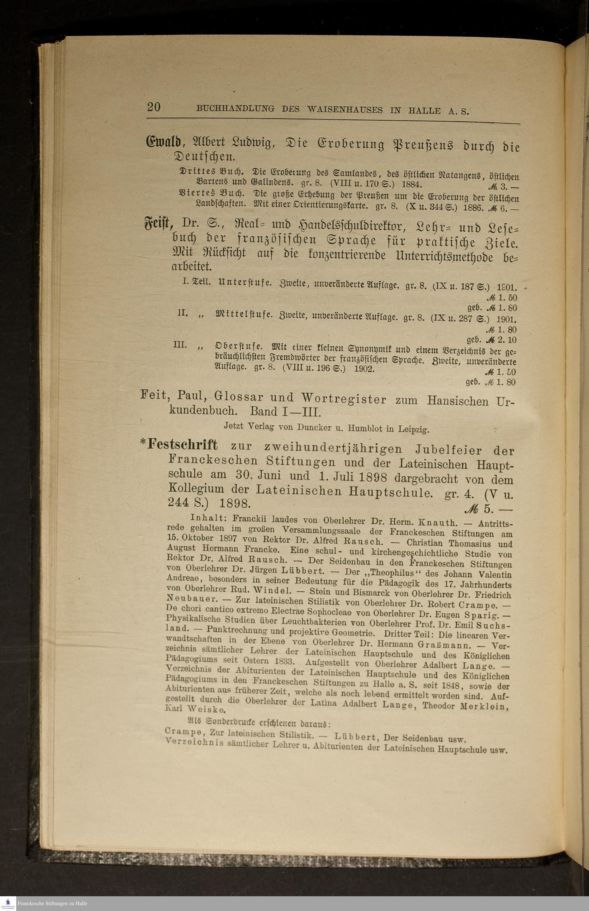 Verlags-Katalog der Buchhandlung des Waisenhauses in Halle a. S