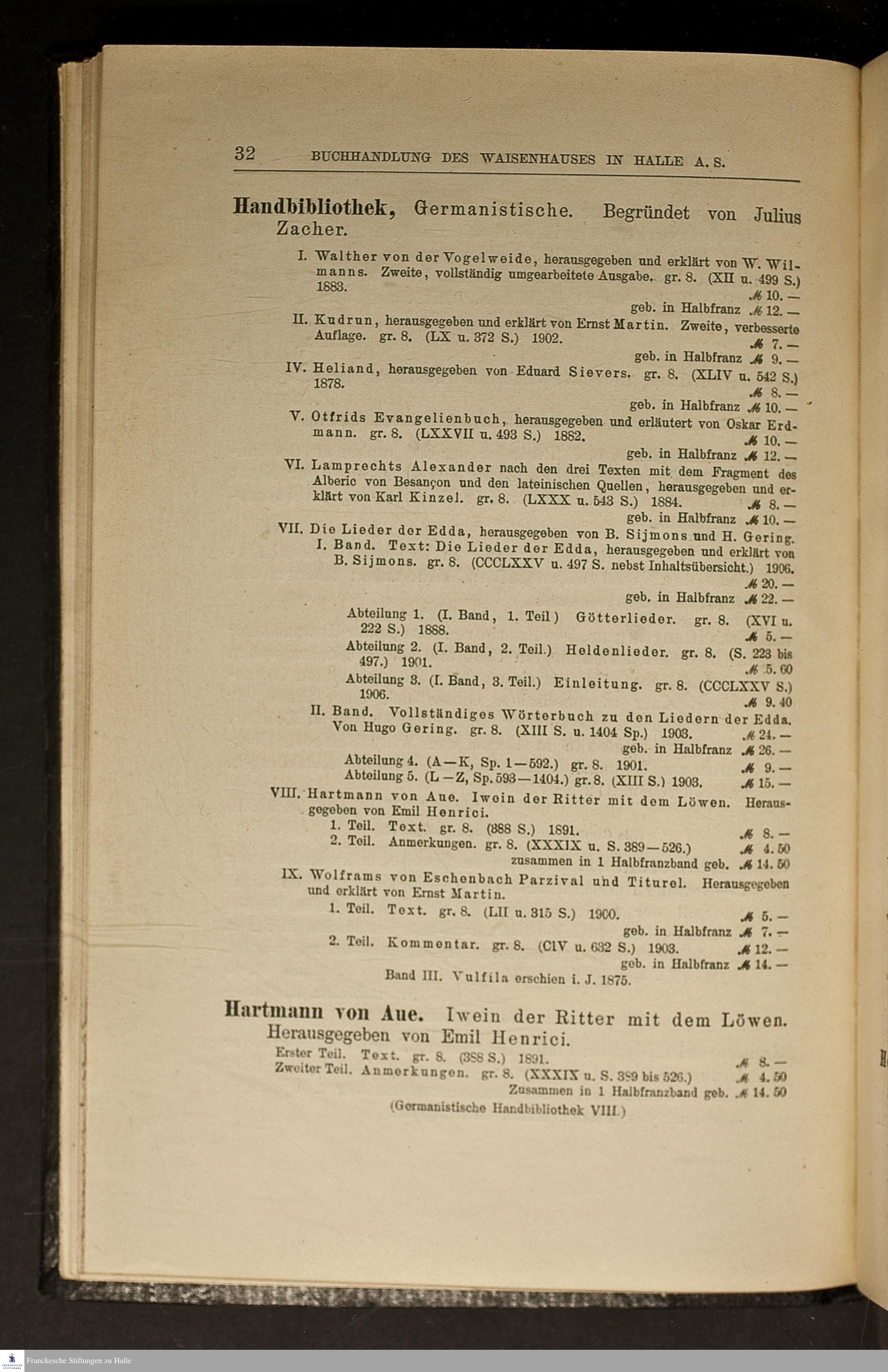 Verlags-Katalog der Buchhandlung des Waisenhauses in Halle a. S
