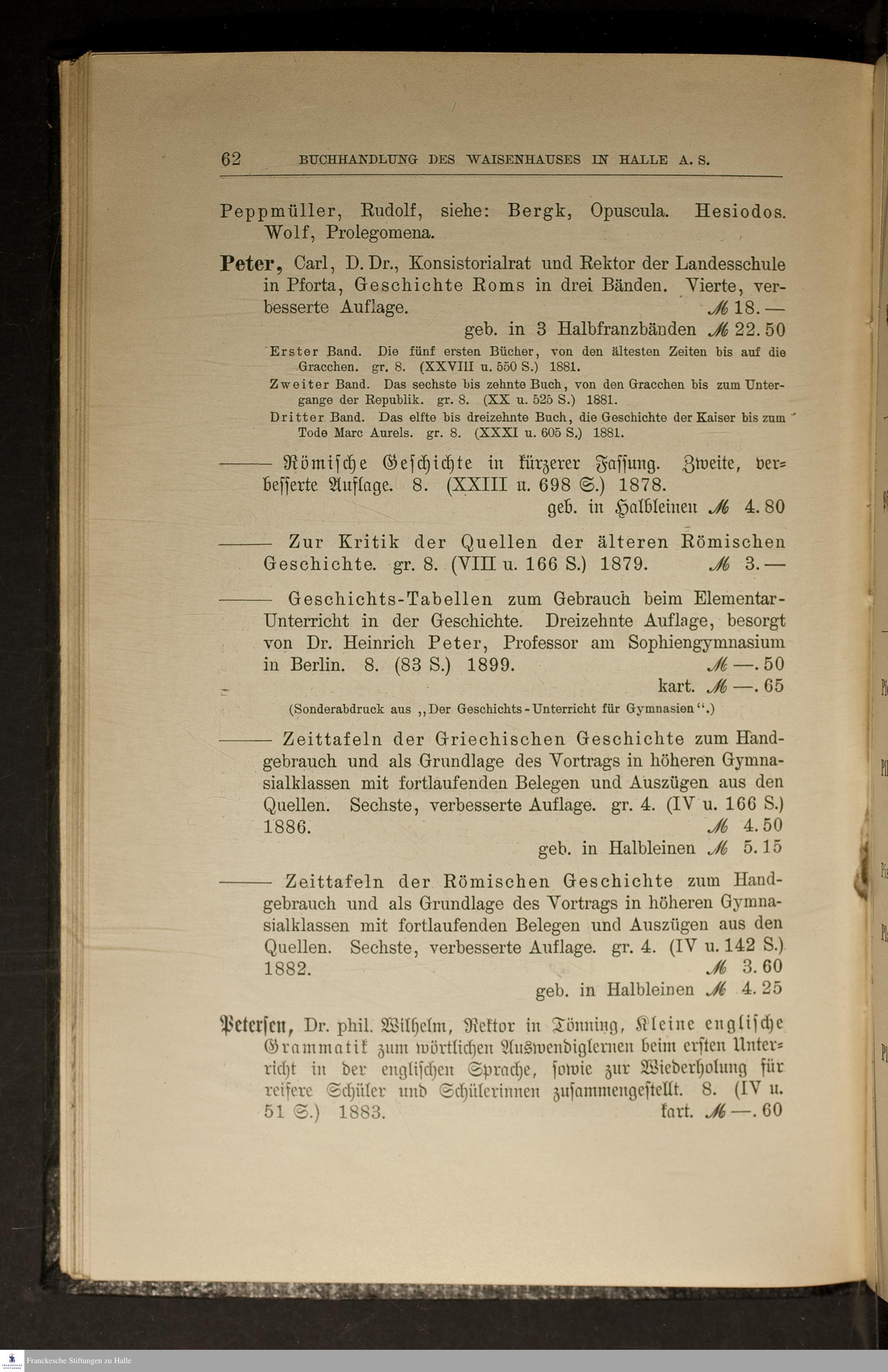 Verlags-Katalog der Buchhandlung des Waisenhauses in Halle a. S