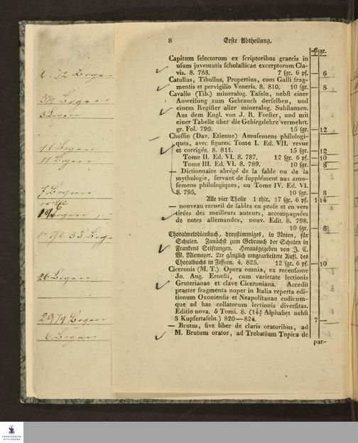 Verlagskatalog der Buchhandlung des Waisenhauses in Halle : in zwei Abtheilungen, I. Neuere Verlagsbücher. pag. 1-56. II. Aeltere Verlagsbücher. pag. 57-104 ; nebst einem Anhange enthaltend ein Verzeichnis der sämmtlichen in diesem Verlage erschienenen classischen Autoren und andern Schulbücher ; bis Jubilate-Messe 1830 fortgesetzt