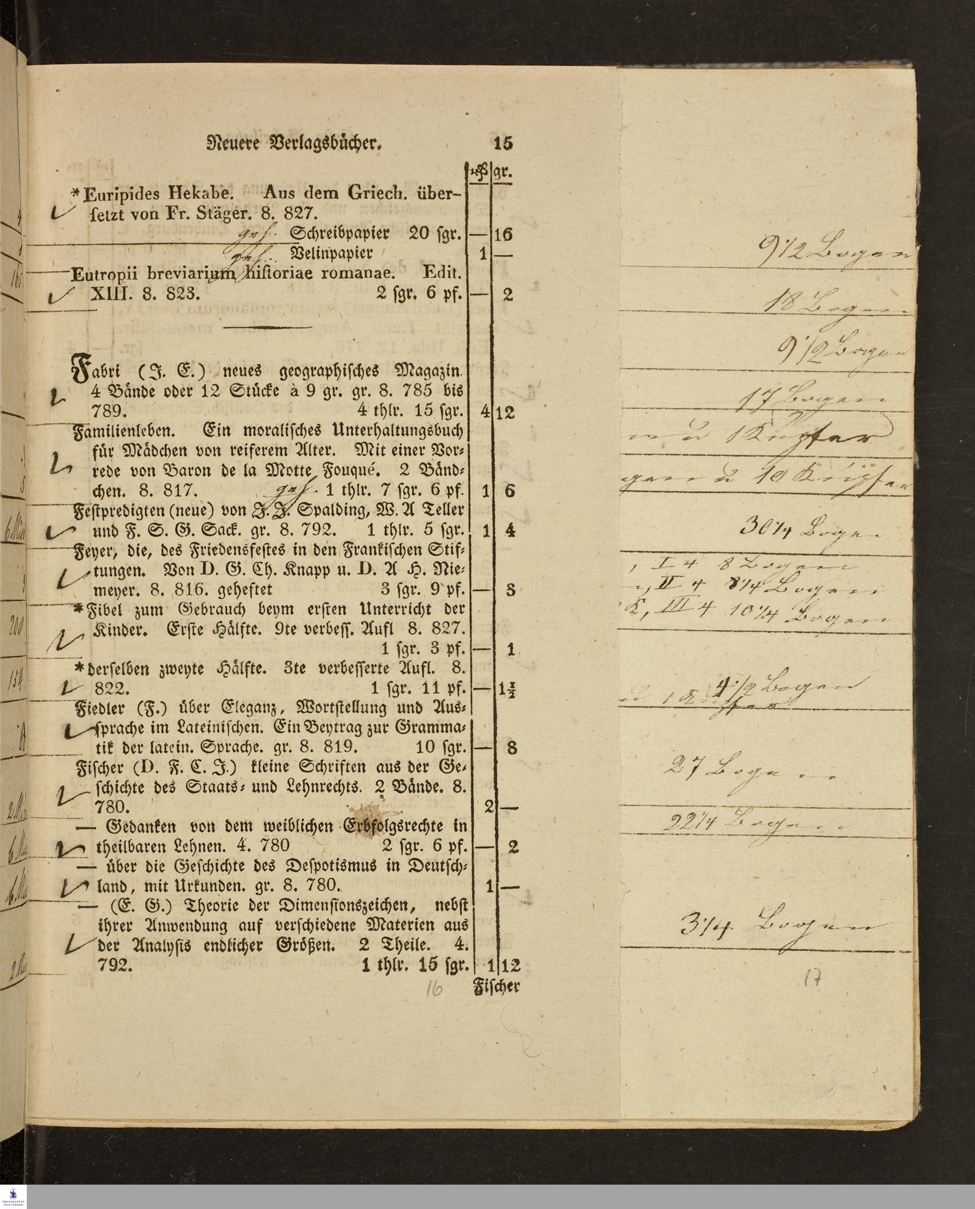 Verlagskatalog der Buchhandlung des Waisenhauses in Halle : in zwei Abtheilungen, I. Neuere Verlagsbücher. pag. 1-56. II. Aeltere Verlagsbücher. pag. 57-104 ; nebst einem Anhange enthaltend ein Verzeichnis der sämmtlichen in diesem Verlage erschienenen classischen Autoren und andern Schulbücher ; bis Jubilate-Messe 1830 fortgesetzt