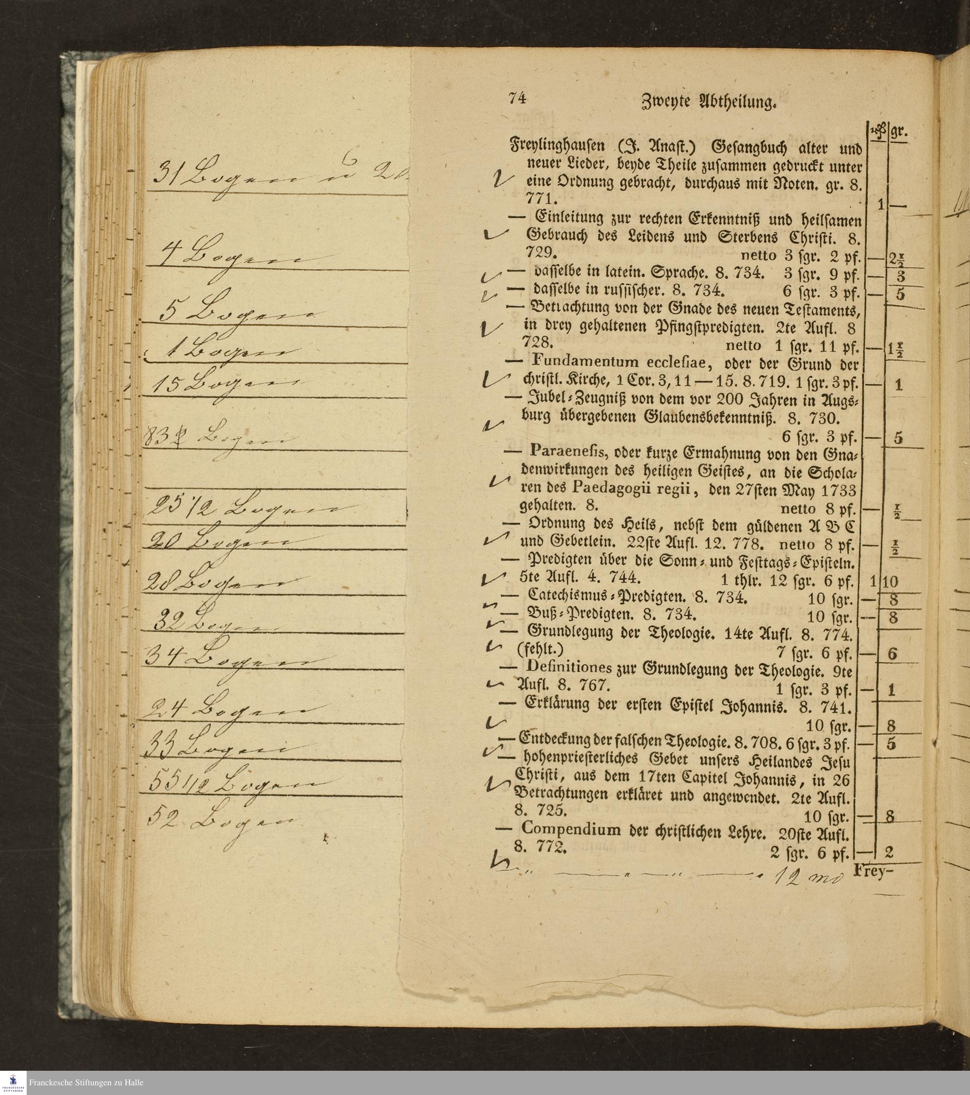 Verlagskatalog der Buchhandlung des Waisenhauses in Halle : in zwei Abtheilungen, I. Neuere Verlagsbücher. pag. 1-56. II. Aeltere Verlagsbücher. pag. 57-104 ; nebst einem Anhange enthaltend ein Verzeichnis der sämmtlichen in diesem Verlage erschienenen classischen Autoren und andern Schulbücher ; bis Jubilate-Messe 1830 fortgesetzt