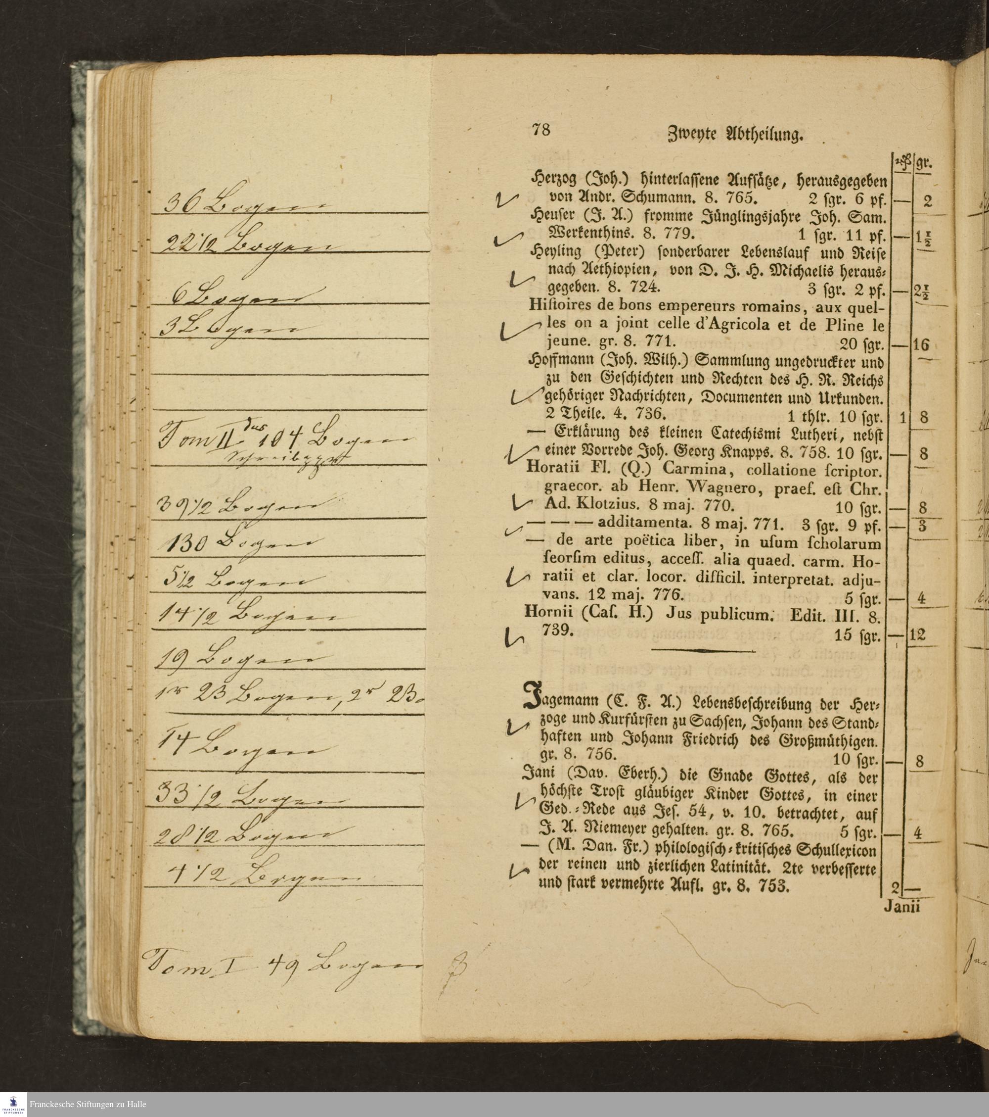 Verlagskatalog der Buchhandlung des Waisenhauses in Halle : in zwei Abtheilungen, I. Neuere Verlagsbücher. pag. 1-56. II. Aeltere Verlagsbücher. pag. 57-104 ; nebst einem Anhange enthaltend ein Verzeichnis der sämmtlichen in diesem Verlage erschienenen classischen Autoren und andern Schulbücher ; bis Jubilate-Messe 1830 fortgesetzt