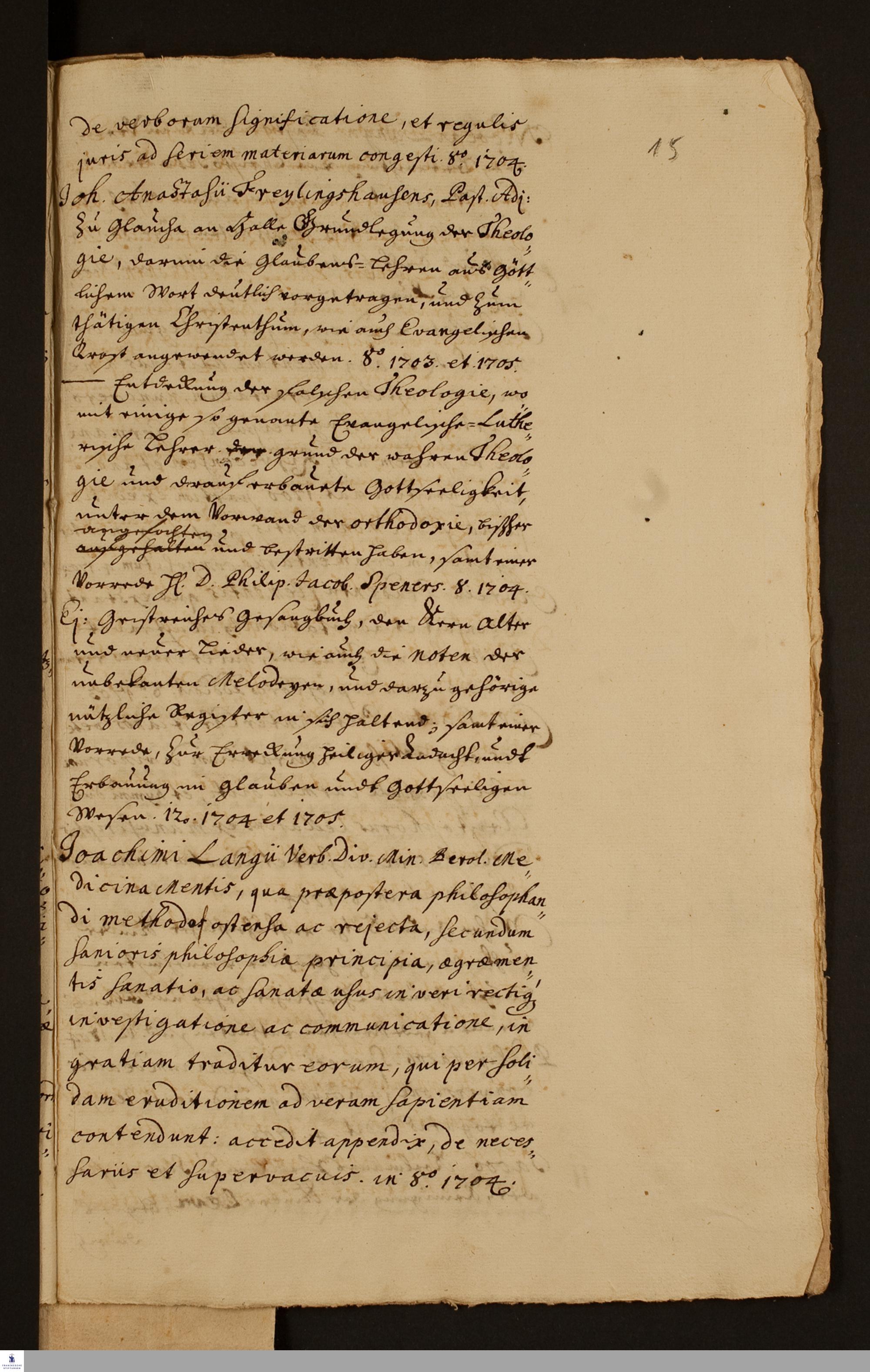 Continuatio wie die gnädige Hand Gottes die beyden Anstalten der Buchdruckerey und des Buchladens biß 1705 im Januario im Seegen fortgeführet hat : [Handschrift]